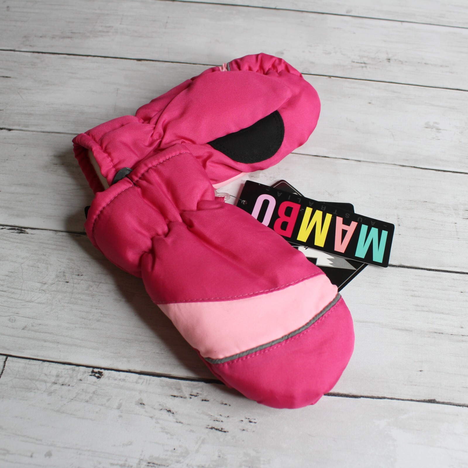 Mambo Girl's Winter Ski Mittens Youth Size 4-6X Pink Black Fleece Lined
