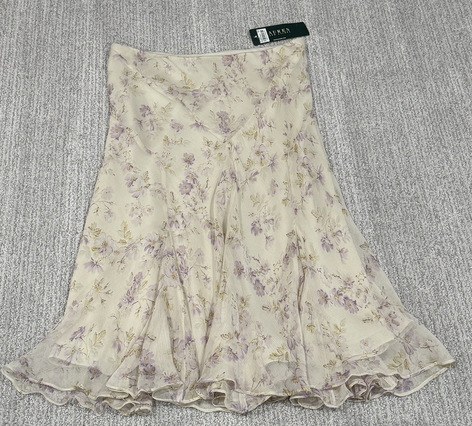 Vintage Women s Ralph Lauren Floral Ruffle Midi Skirt New With Tags Size Small