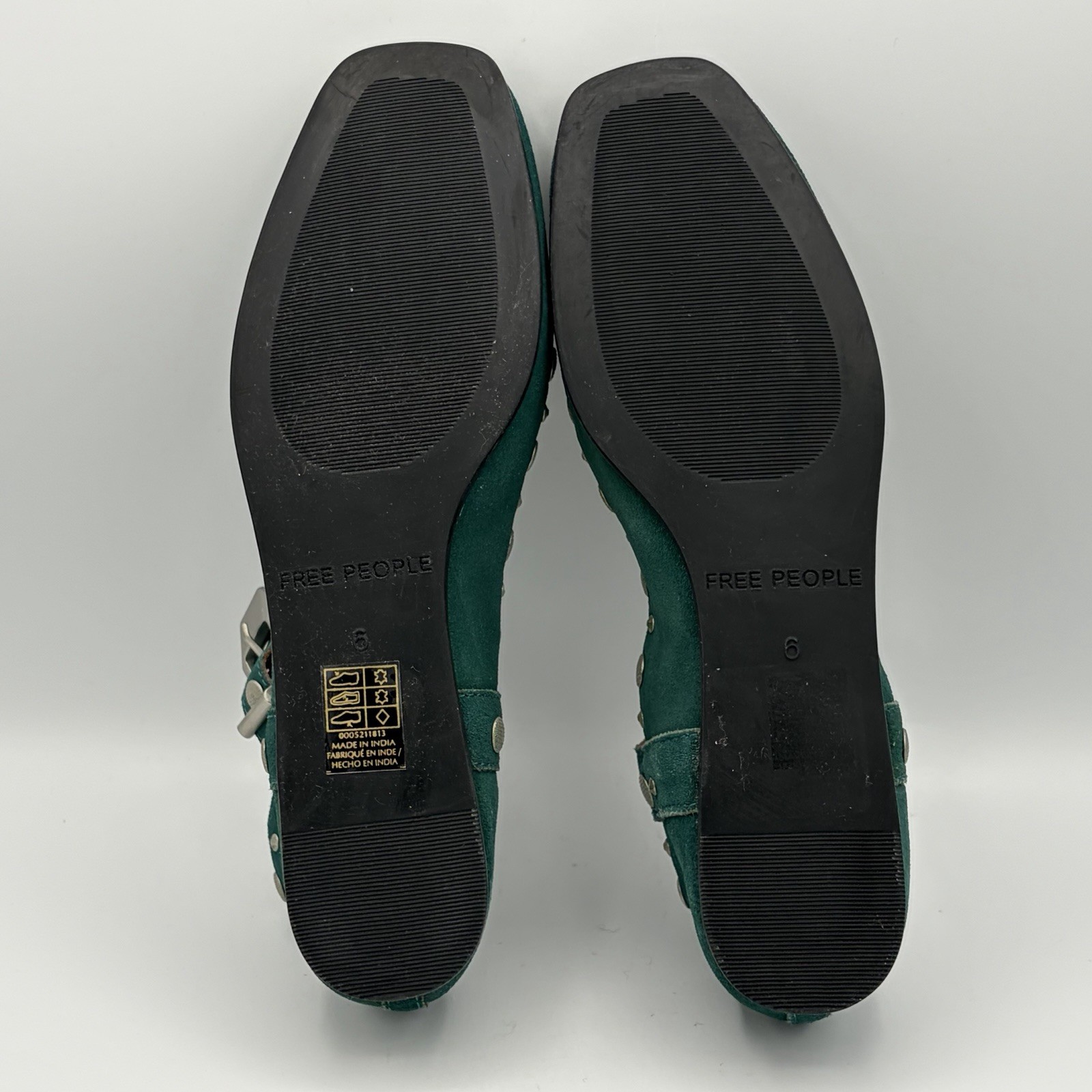 Free People Mystic Mary Jane Flats Green Suede Silver Tone Studs Size 6