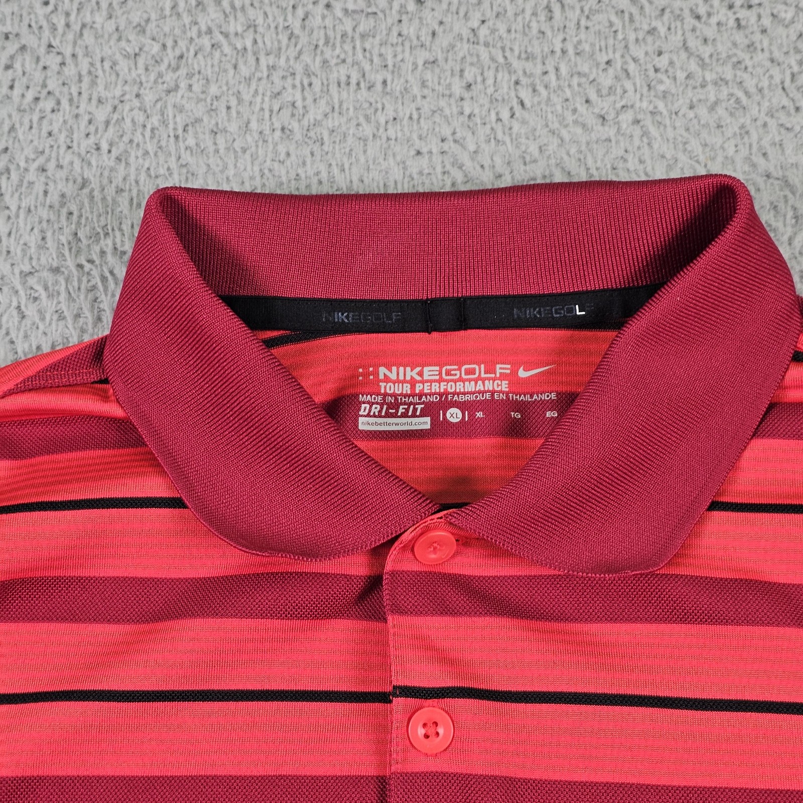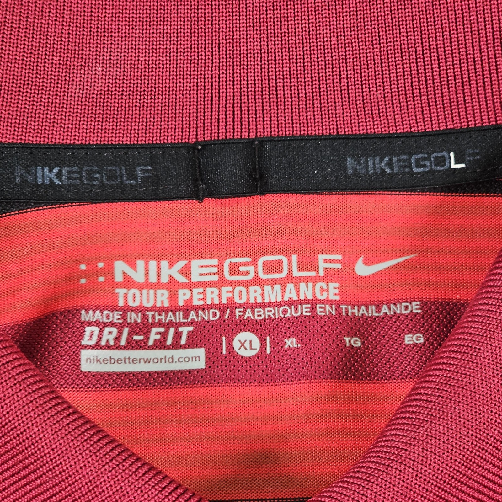 Nike Golf Polo Shirt Mens XL Red Striped Tour Performance Dri-FIT 619844-660