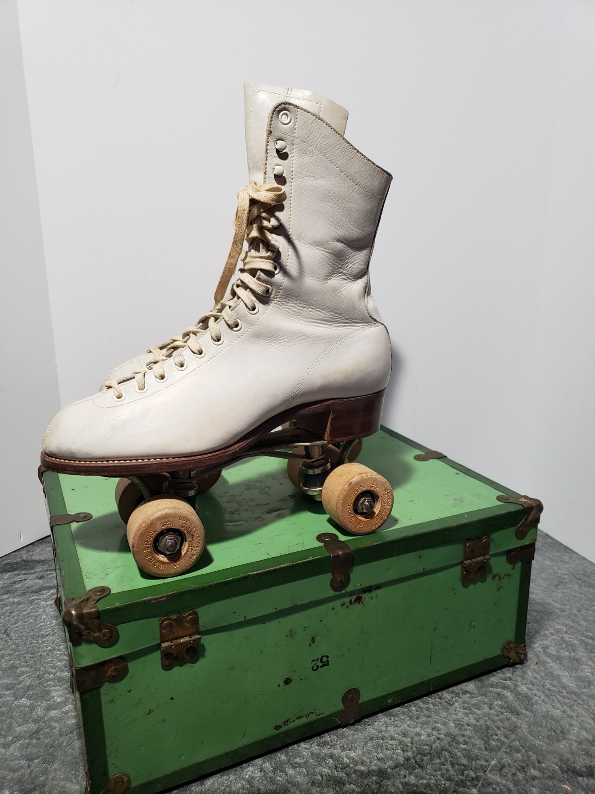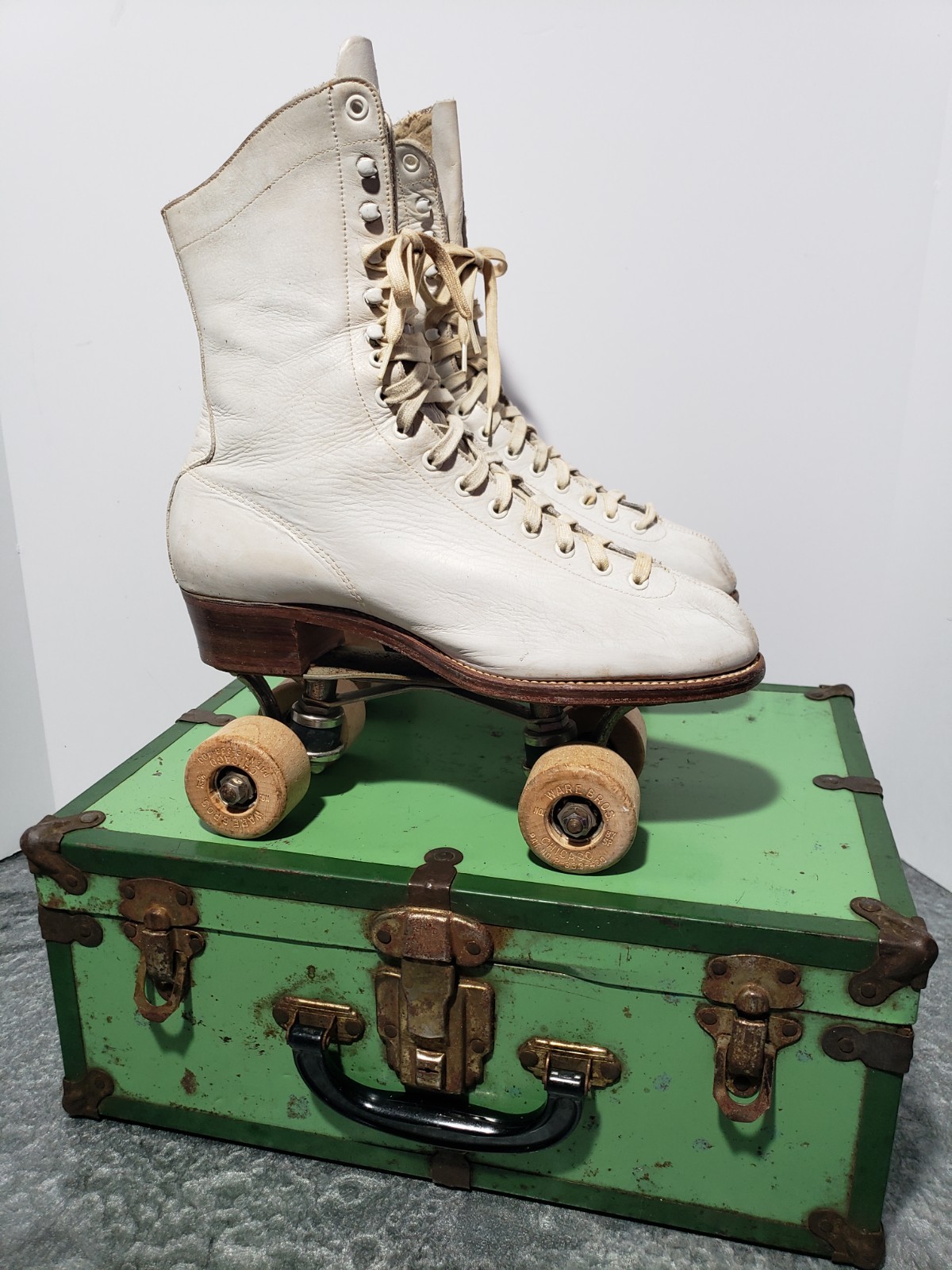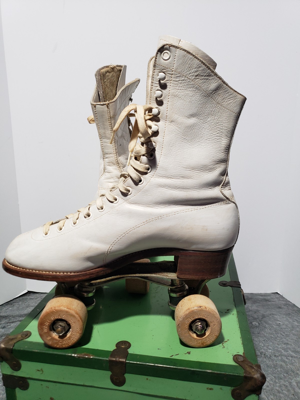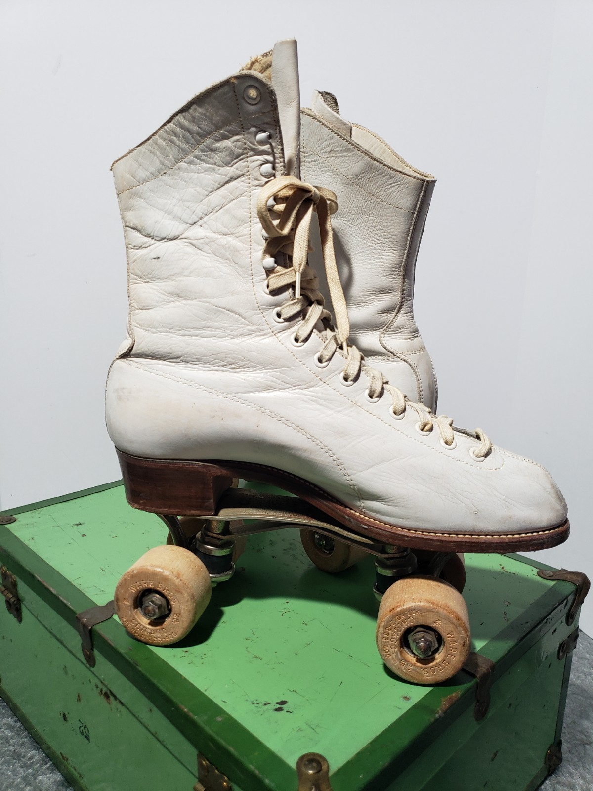 Vintage HYDE Chicago Woman's Roller Skates White Leather Size 8 w/ Case