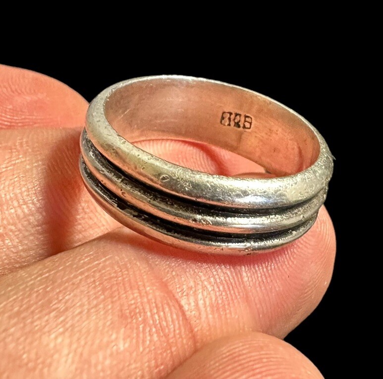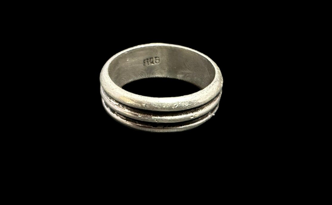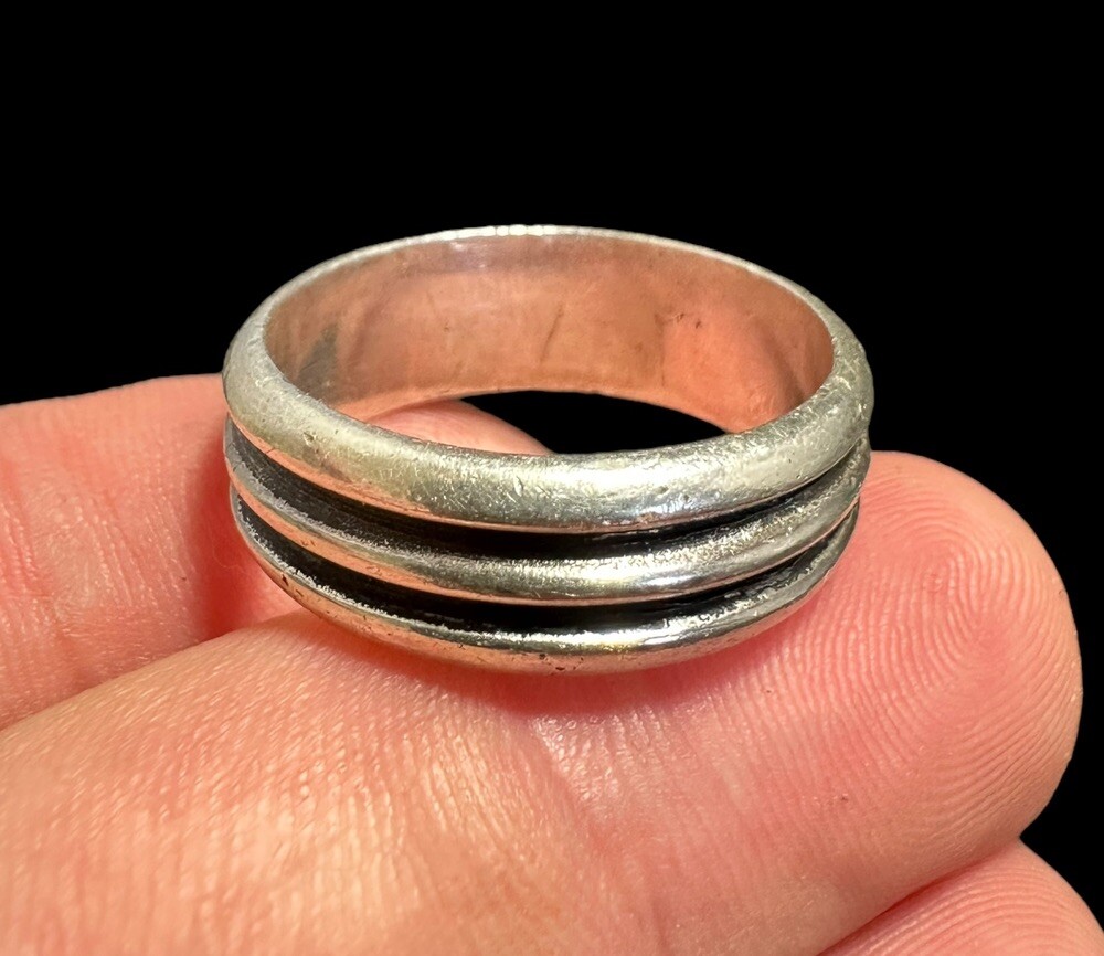 как выглядит Vintage Sterling Silver Wide Band Ring Ribbed Texture Size 11.25 фото