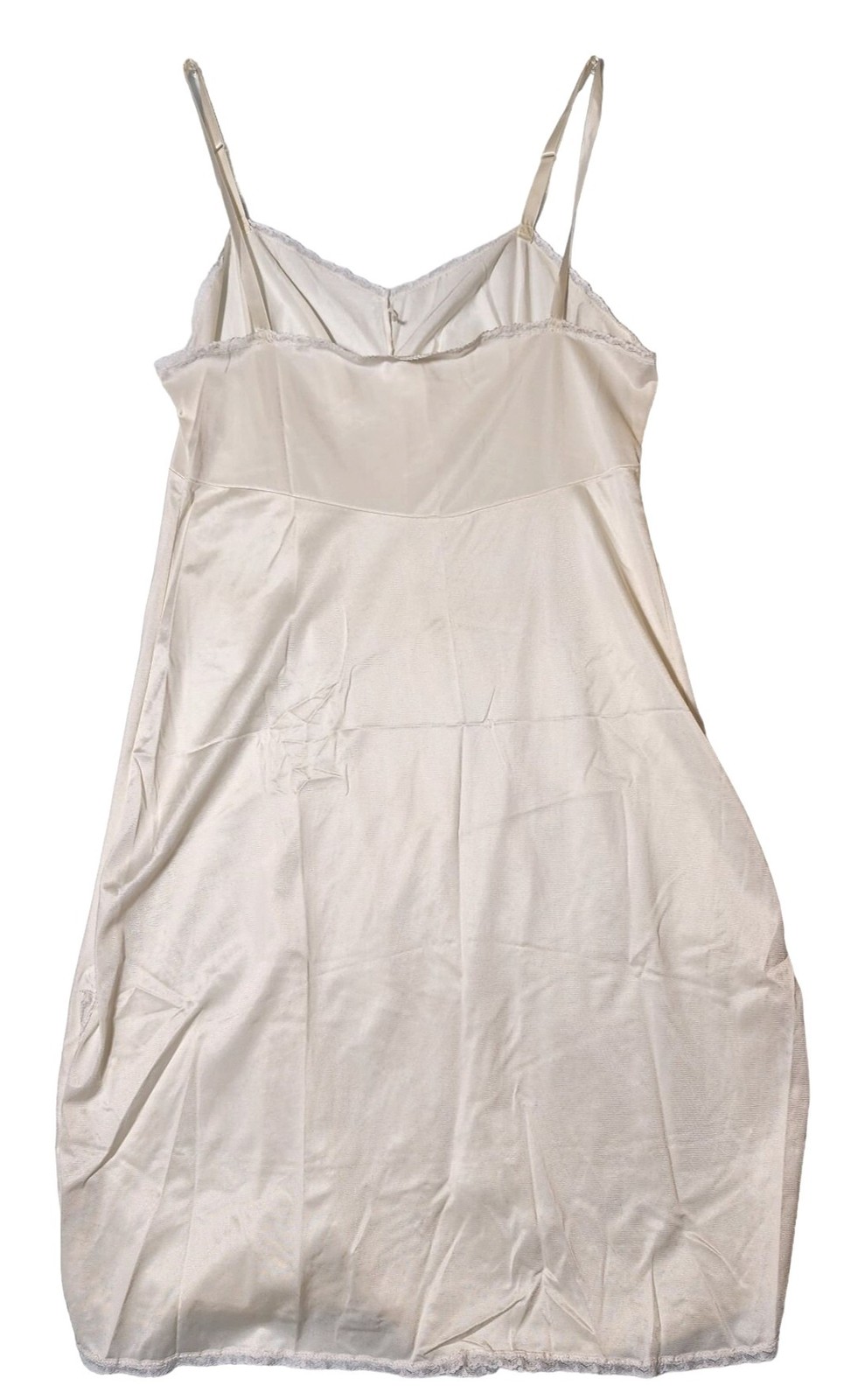 как выглядит Womens Vintage Nancy King Lingerie Nylon Slip Lace Trim 38 Side Slit White фото