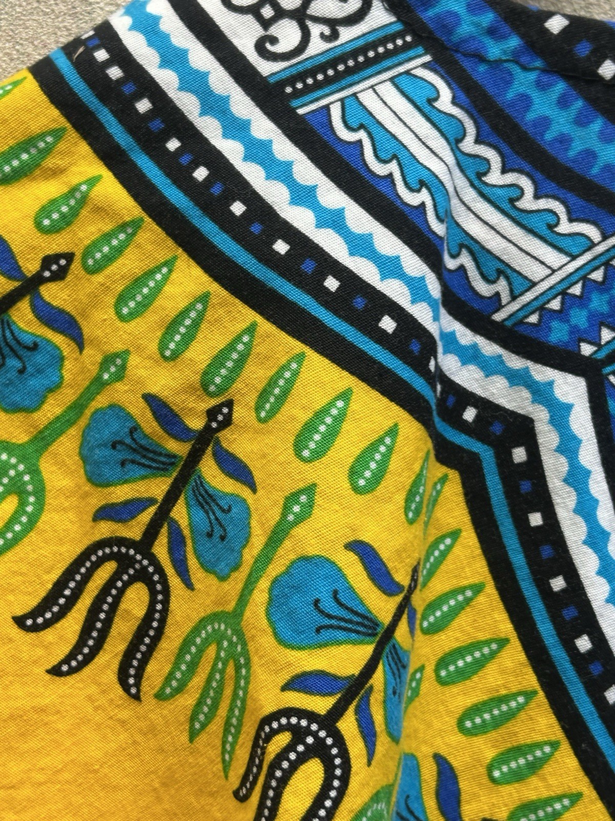 Mama Papa Dashiki Tunic African Boho Shirt Yellow Blue One Size XL Thailand