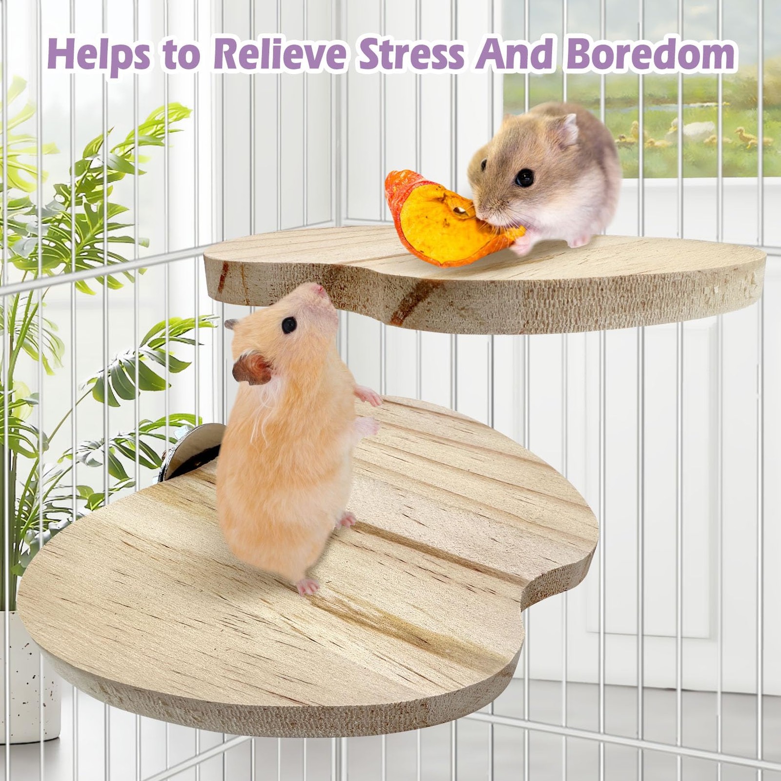 4 PCS Wooden Hamster Cage Platform Set Bird Wood Perch Stand Board Habitat