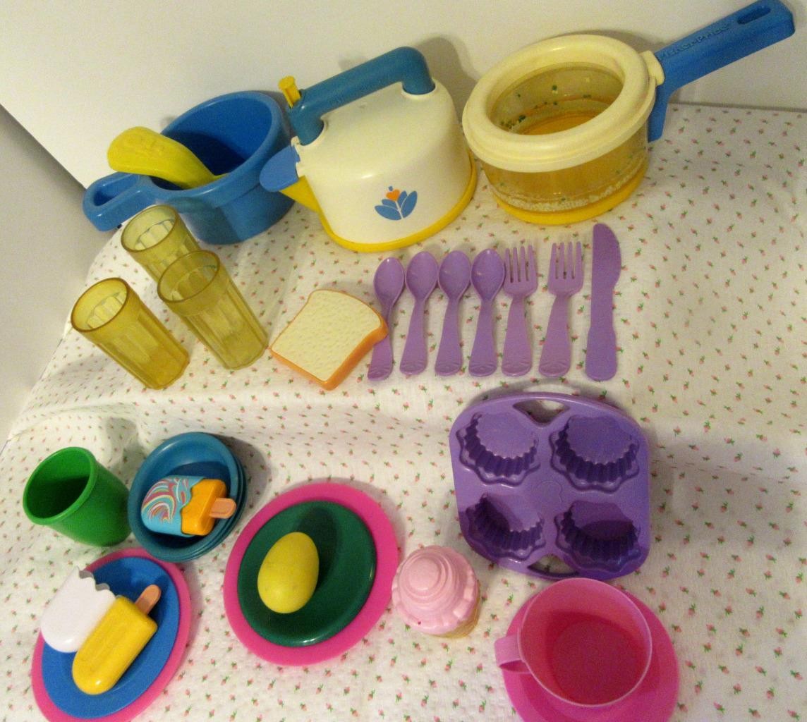 как выглядит Vintage 30pc Fisher Price FUN WITH FOOD Whistling Teapot Dishes Cupcake Tray Lot фото