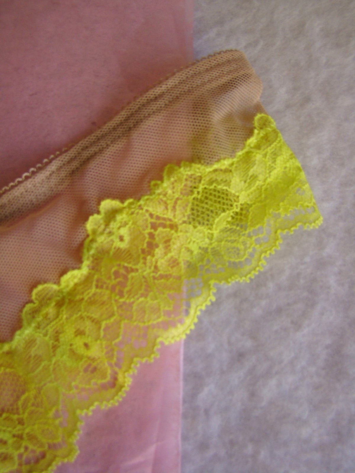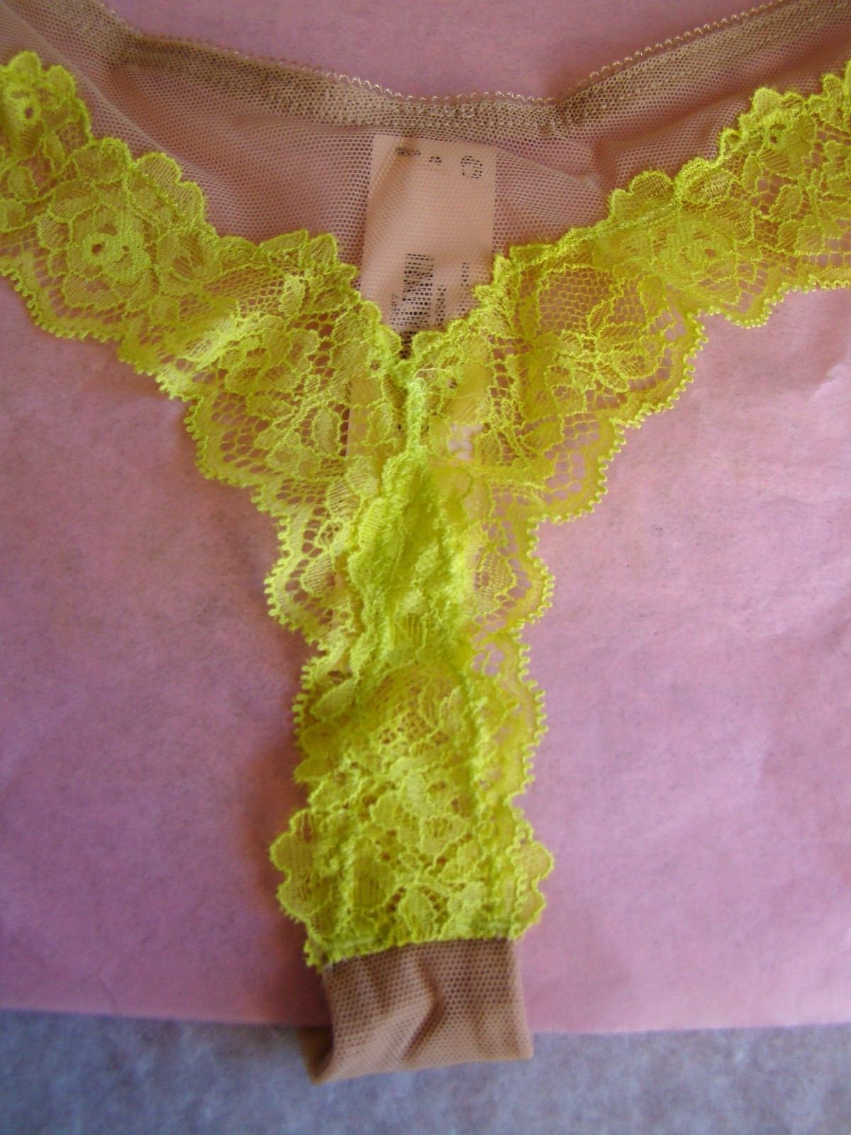 New Victoria's Secret Tan Mesh Neon Green Floral Lace High Leg Thong Panty