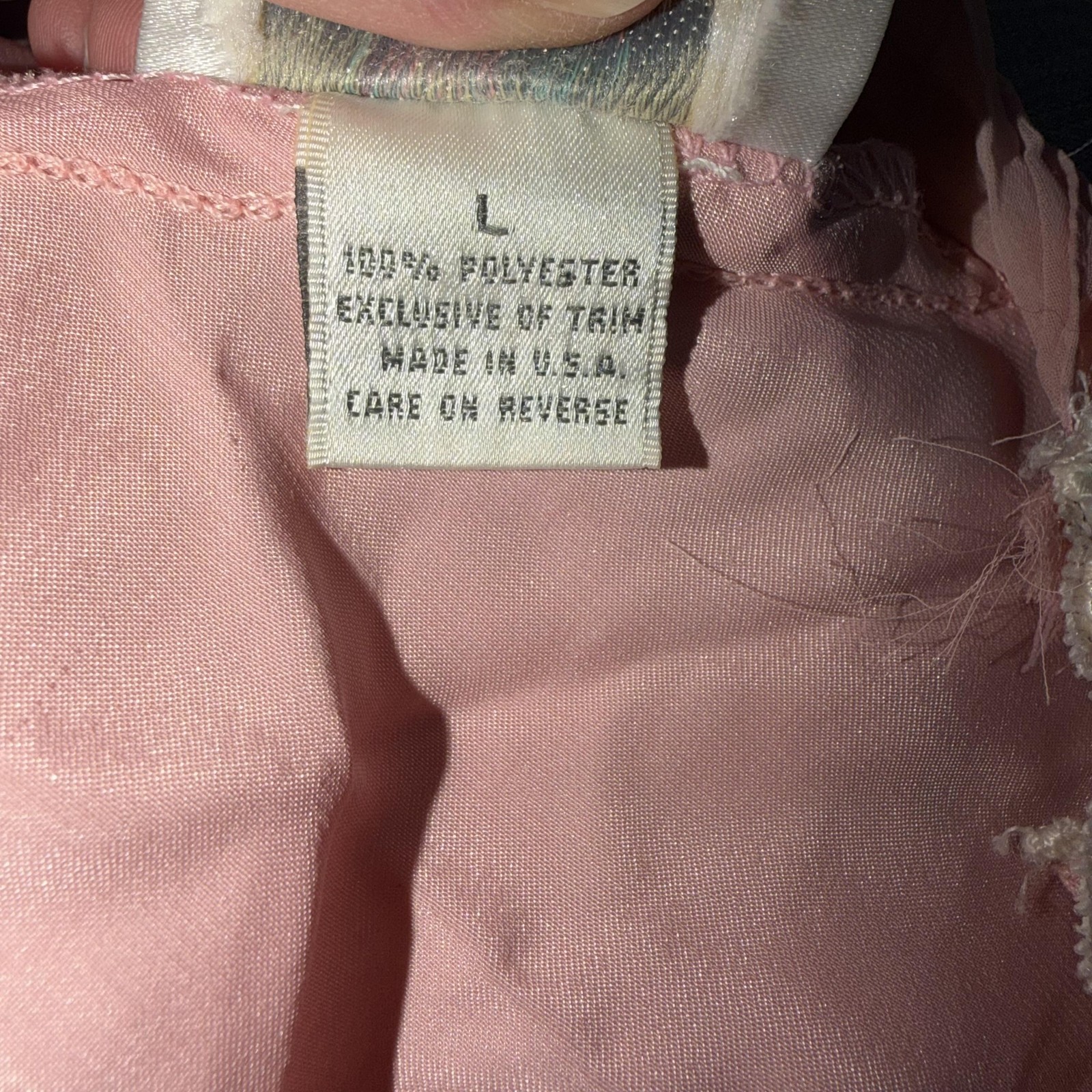 как выглядит Vintage Dentelle Slip Dress L Pink Satin Lace Ruffle Hem Chemise USA Lingerie фото
