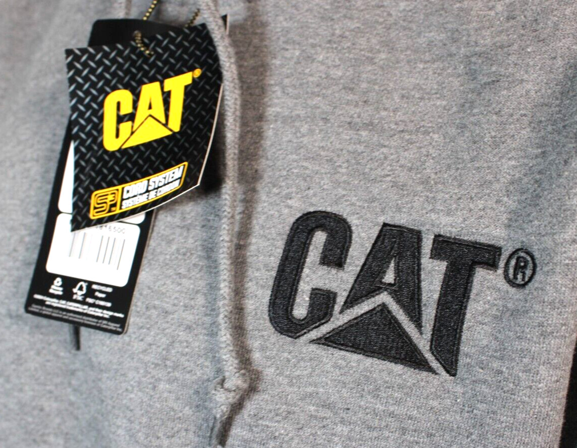 CATERPILLAR Size Medium Gray / Black CAT Logo Heavyweight Men Hoodie Sweatshirt