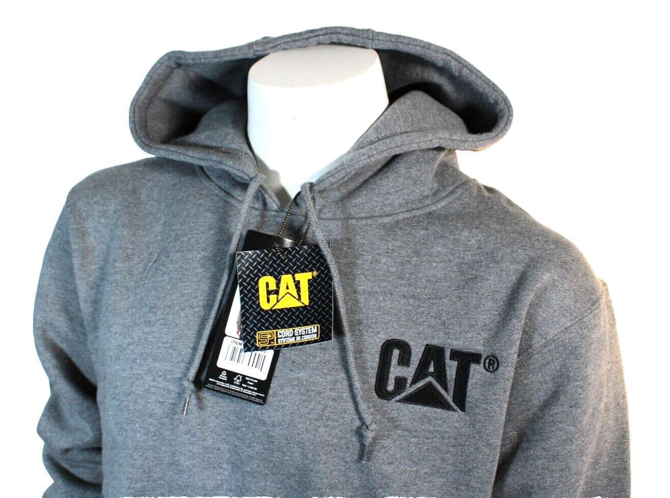 как выглядит CATERPILLAR Size Medium Gray / Black CAT Logo Heavyweight Men Hoodie Sweatshirt фото