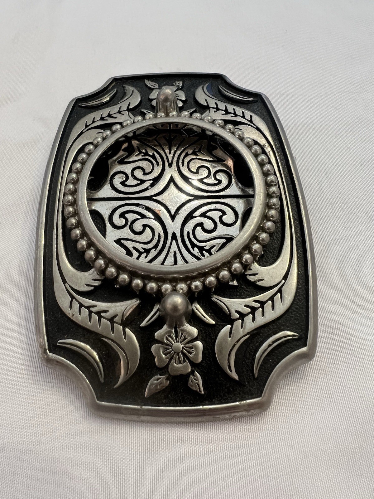 как выглядит Rectangle Flower Swirl Etched Floral Theme Western Cowboy Belt Buckle фото