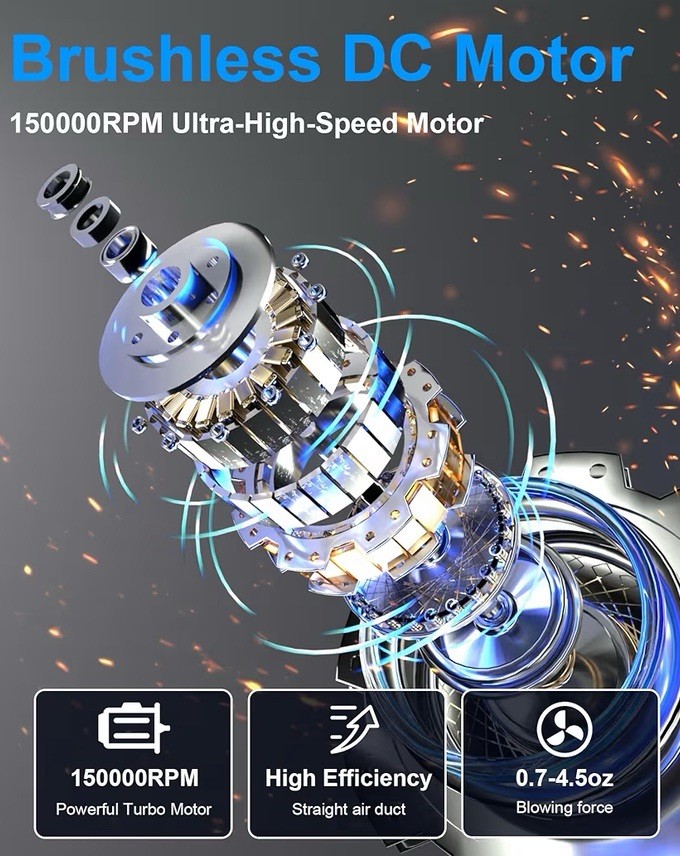 как выглядит Compressed Air Duster-150,000RPM Electric Cleaner, Rechargeable Black Cordless фото