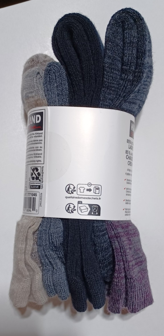 Kirkland Signature 85 Extra-Fine Merino Wool Ladies' Crew Socks 4 Pack Women