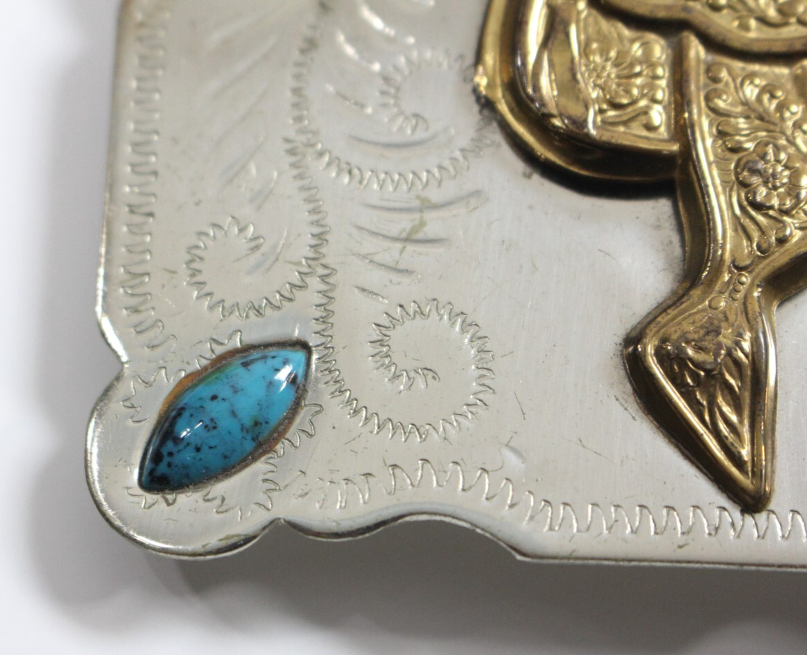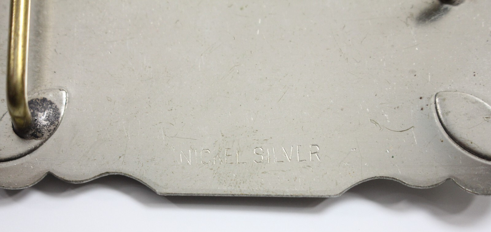 • Vintage Nickel Silver Western Belt Buckle Saddle Stones
