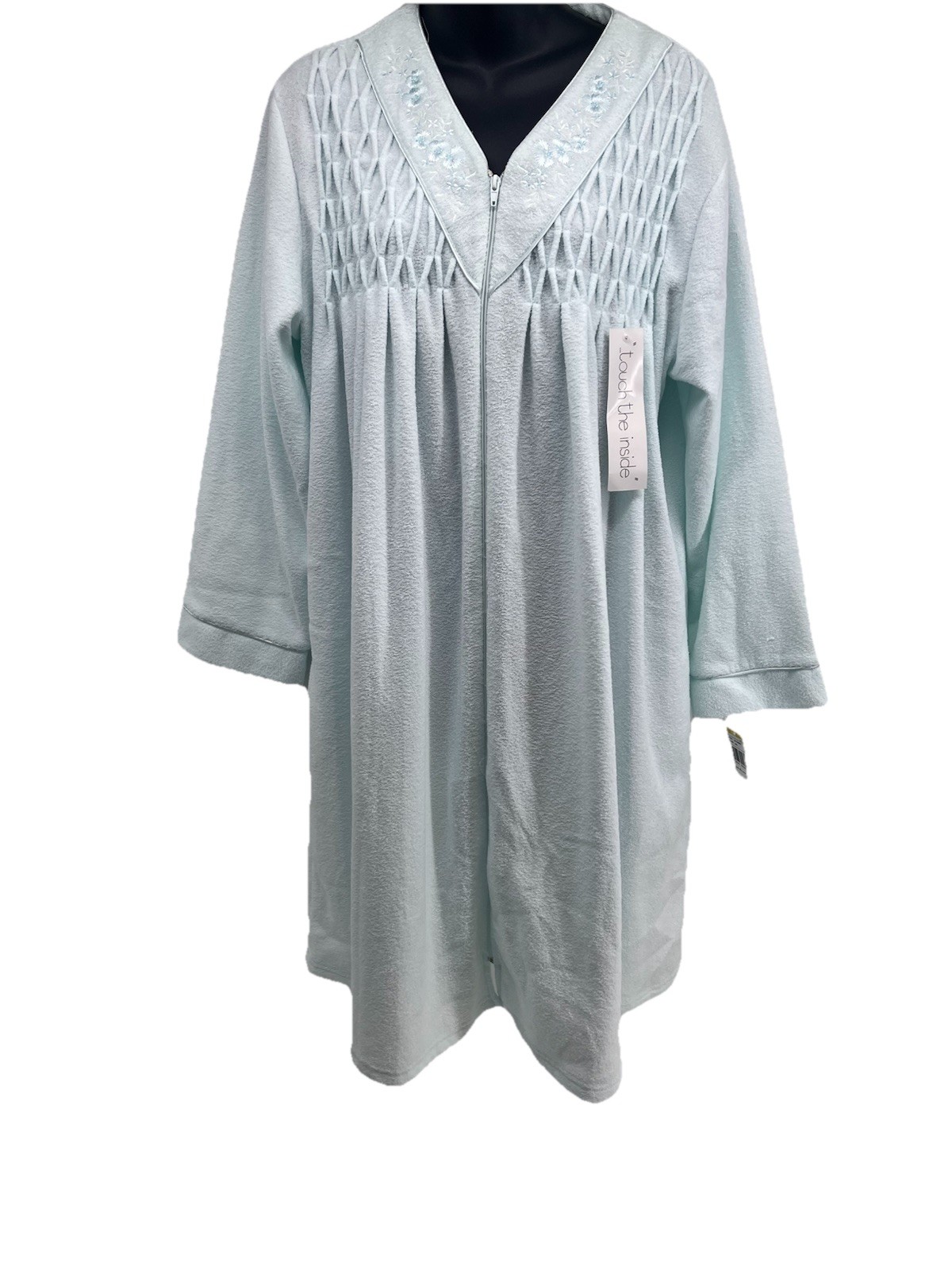 как выглядит NWT Miss Elaine Medium Brushed Back Terry Zip Front Robe Ice Blue House Coat фото