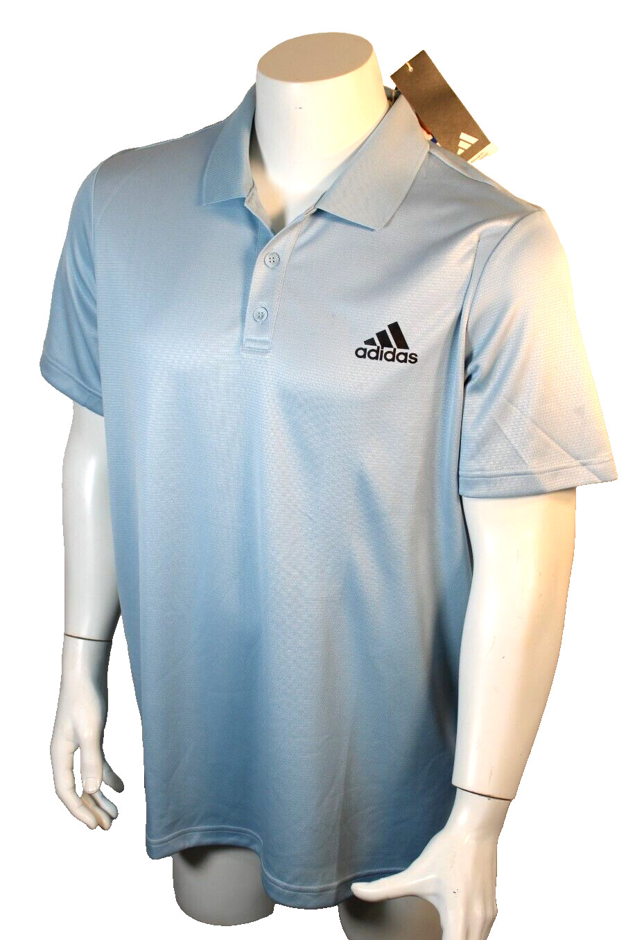 как выглядит ADIDAS Aeroready Size Large Light Blue/Black Logo Regular Fit Mens Polo Shirt фото
