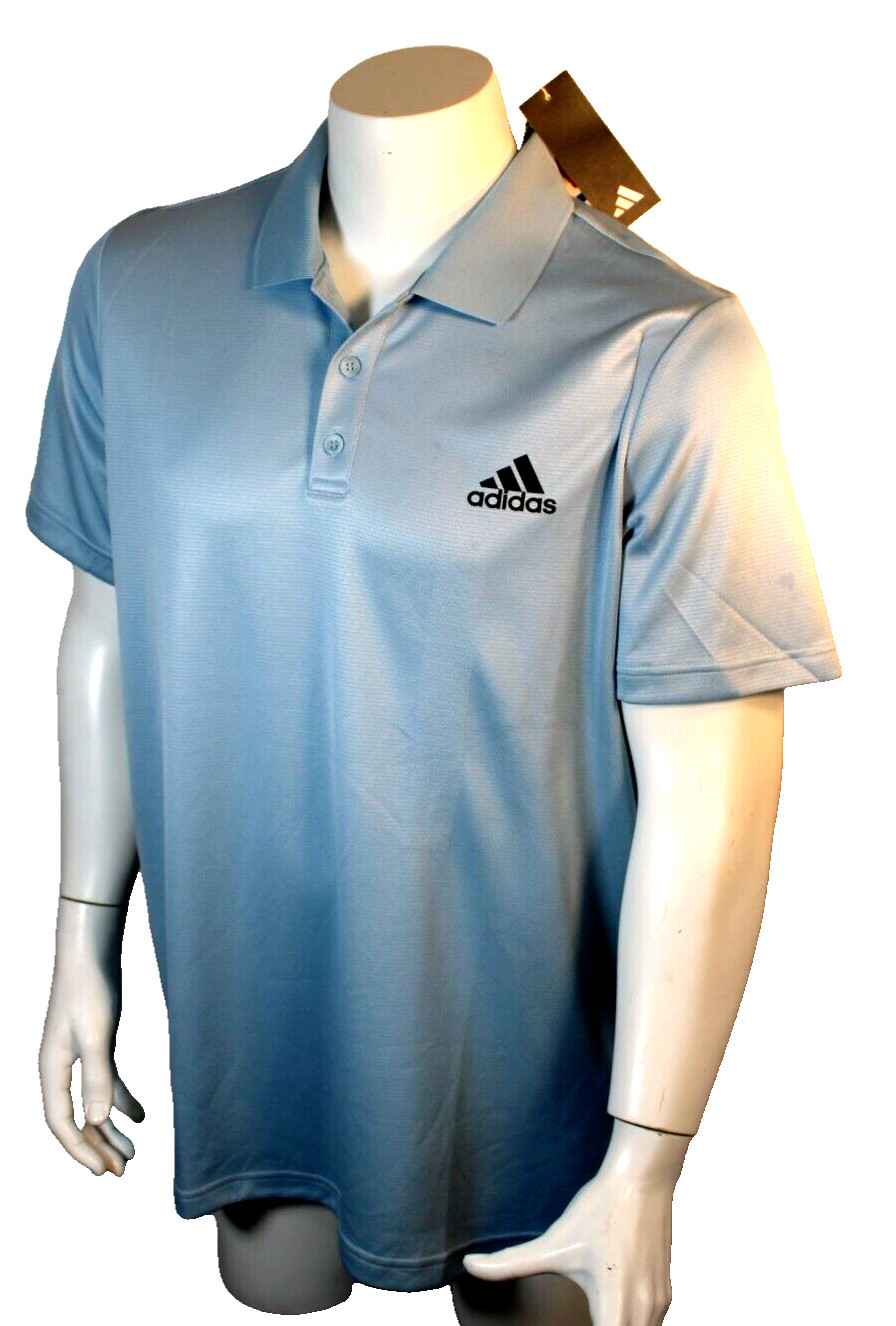 ADIDAS Aeroready Size Large Light Blue/Black Logo Regular Fit Men's Polo Shirt