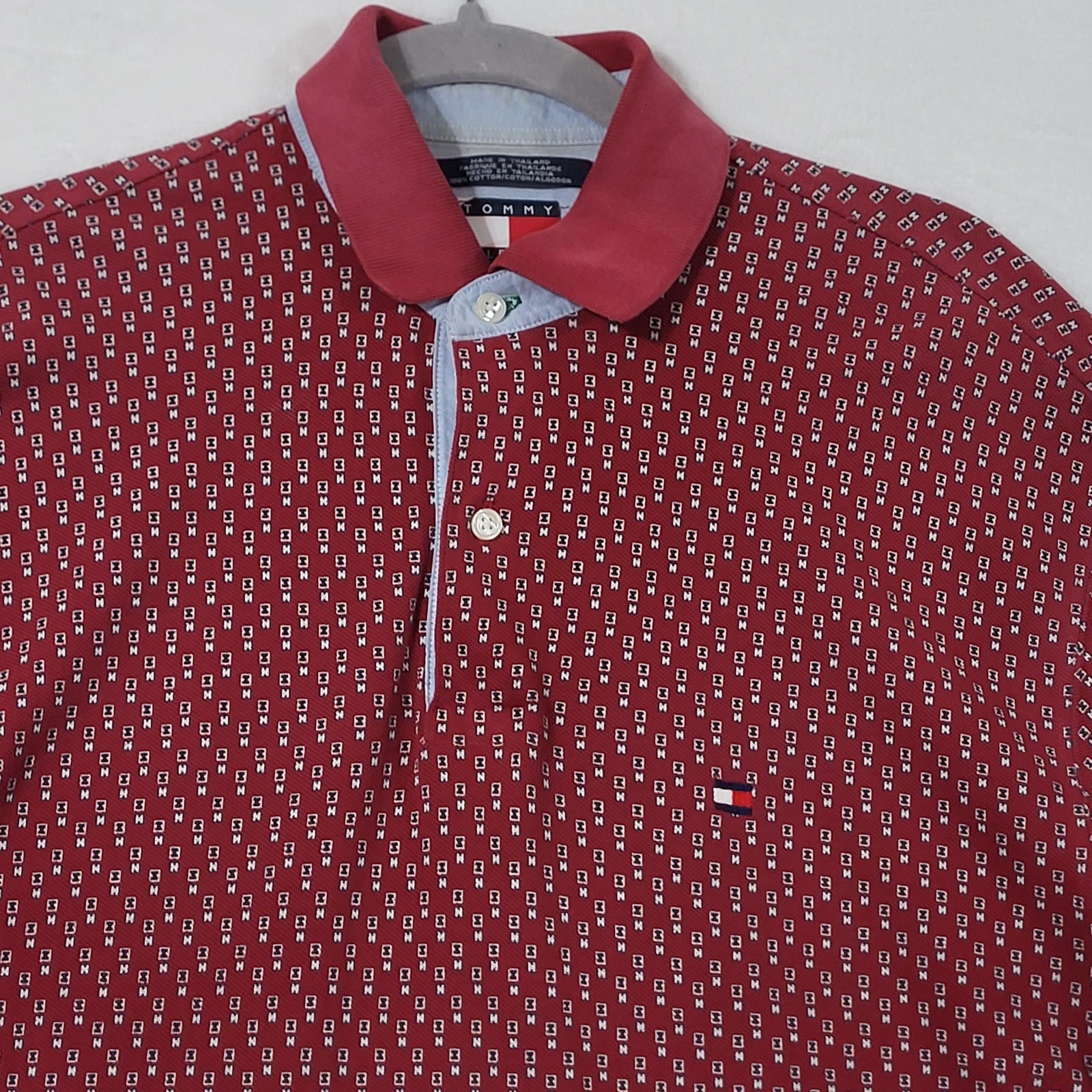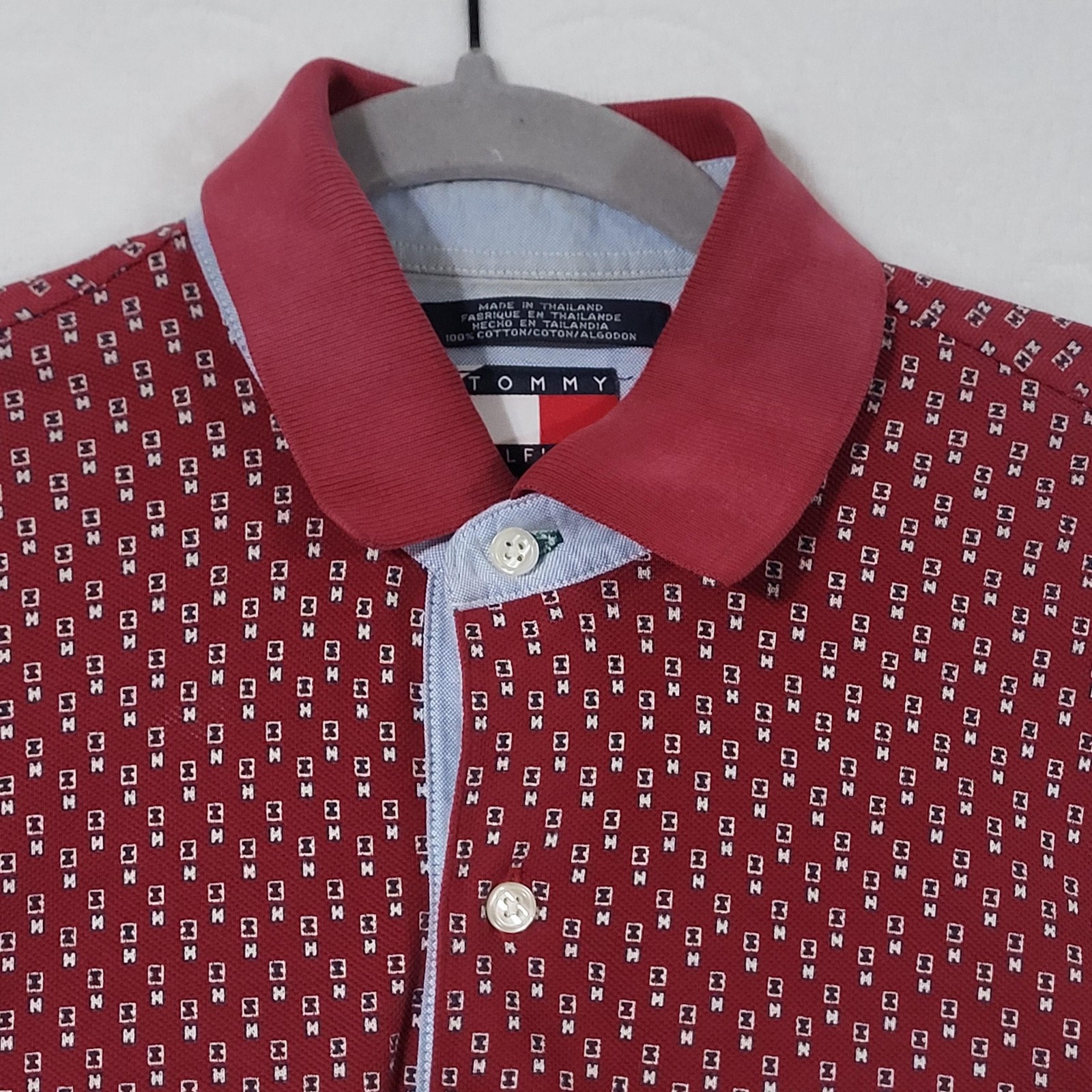 Tommy Hilfiger Polo Shirt Mens M Red Geometric Print Cotton Short Sleeve Casual
