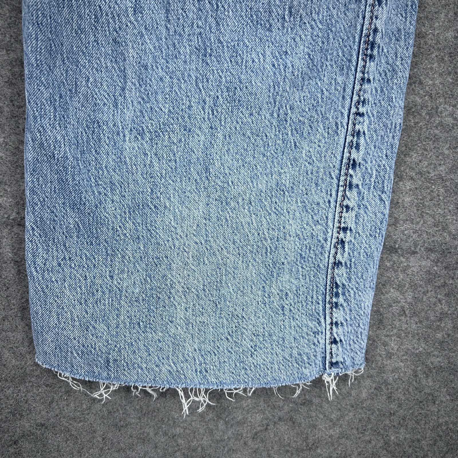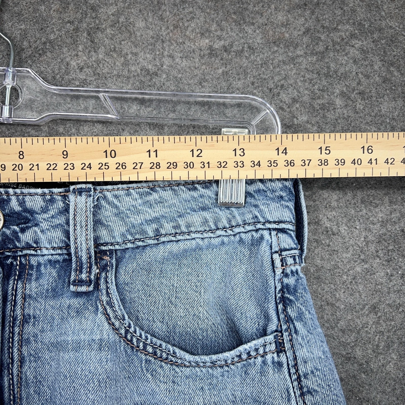 как выглядит Hollister Ultra High-Rise Baggy Jeans Womens 4 Tall Light Wash Wide Leg Raw Hem фото