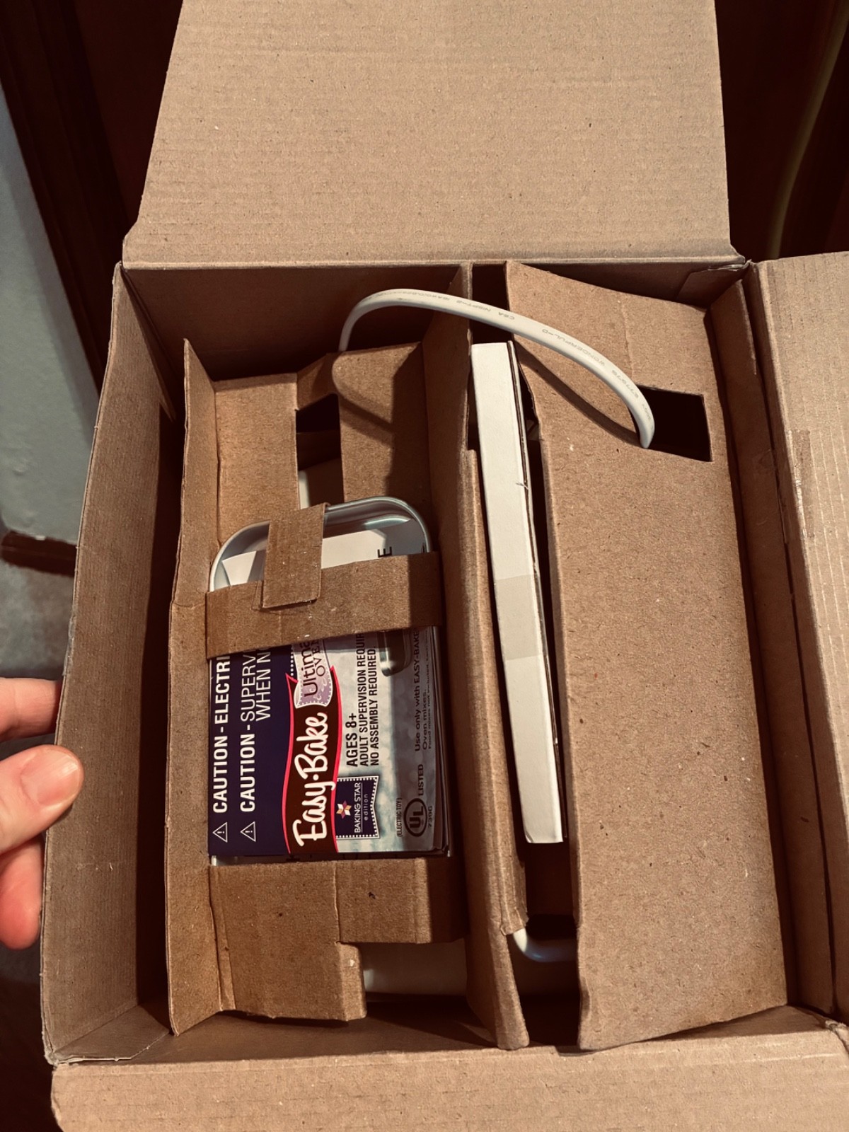 Easy bake oven in original packaging with food, working oven tray and spatula