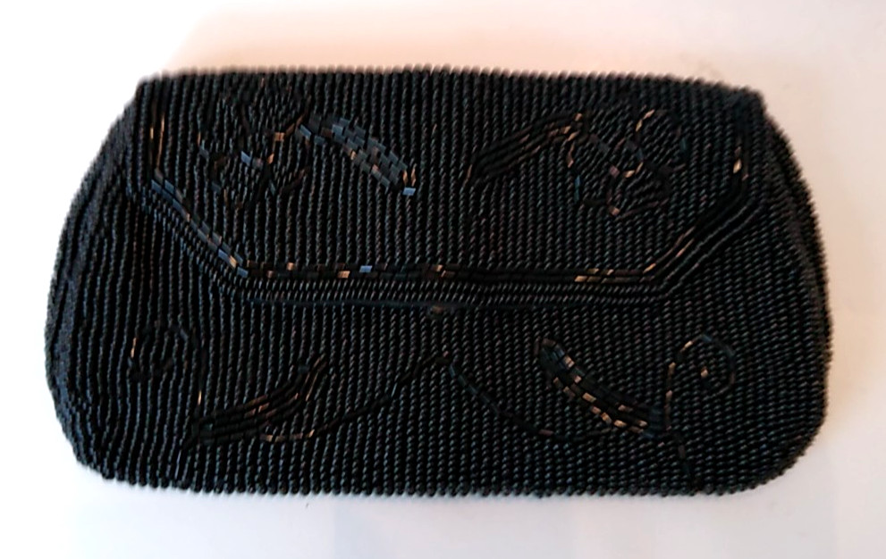 как выглядит Vintage Belgium Black Beaded Purse Clutch Finger Loop Snap Closure Nice фото