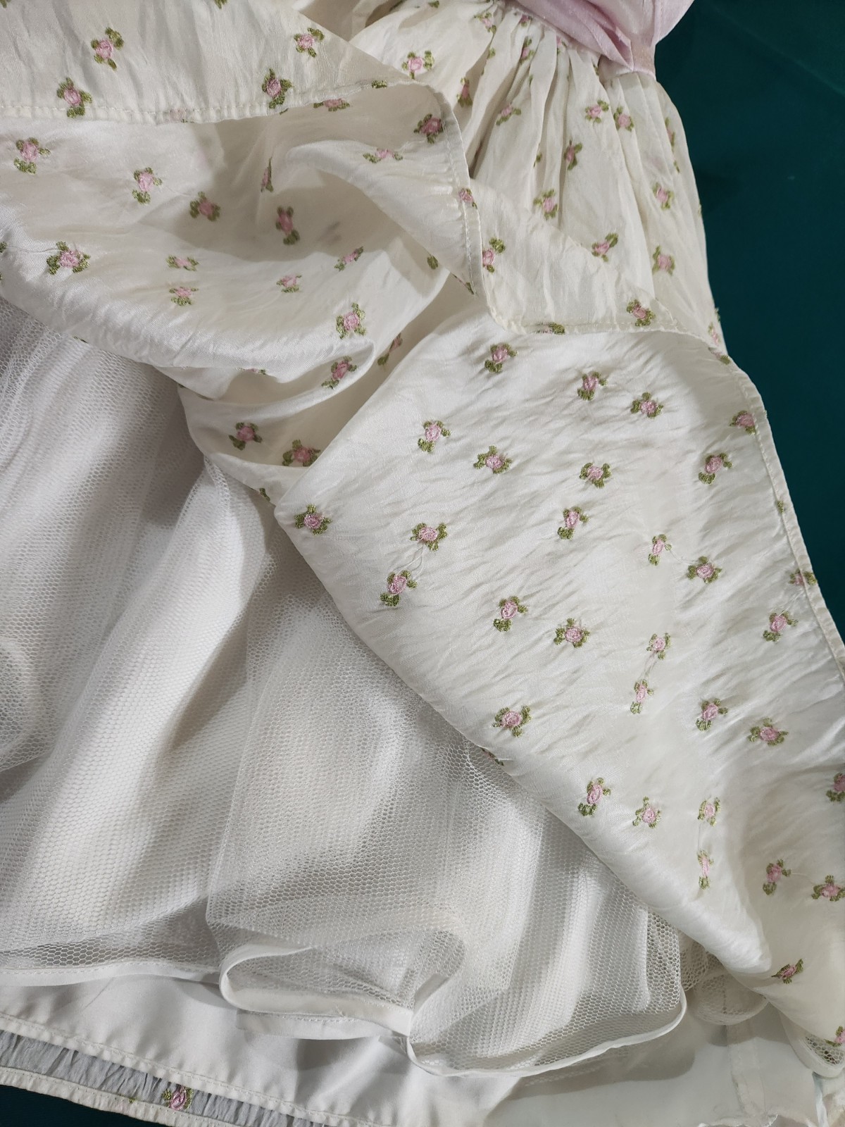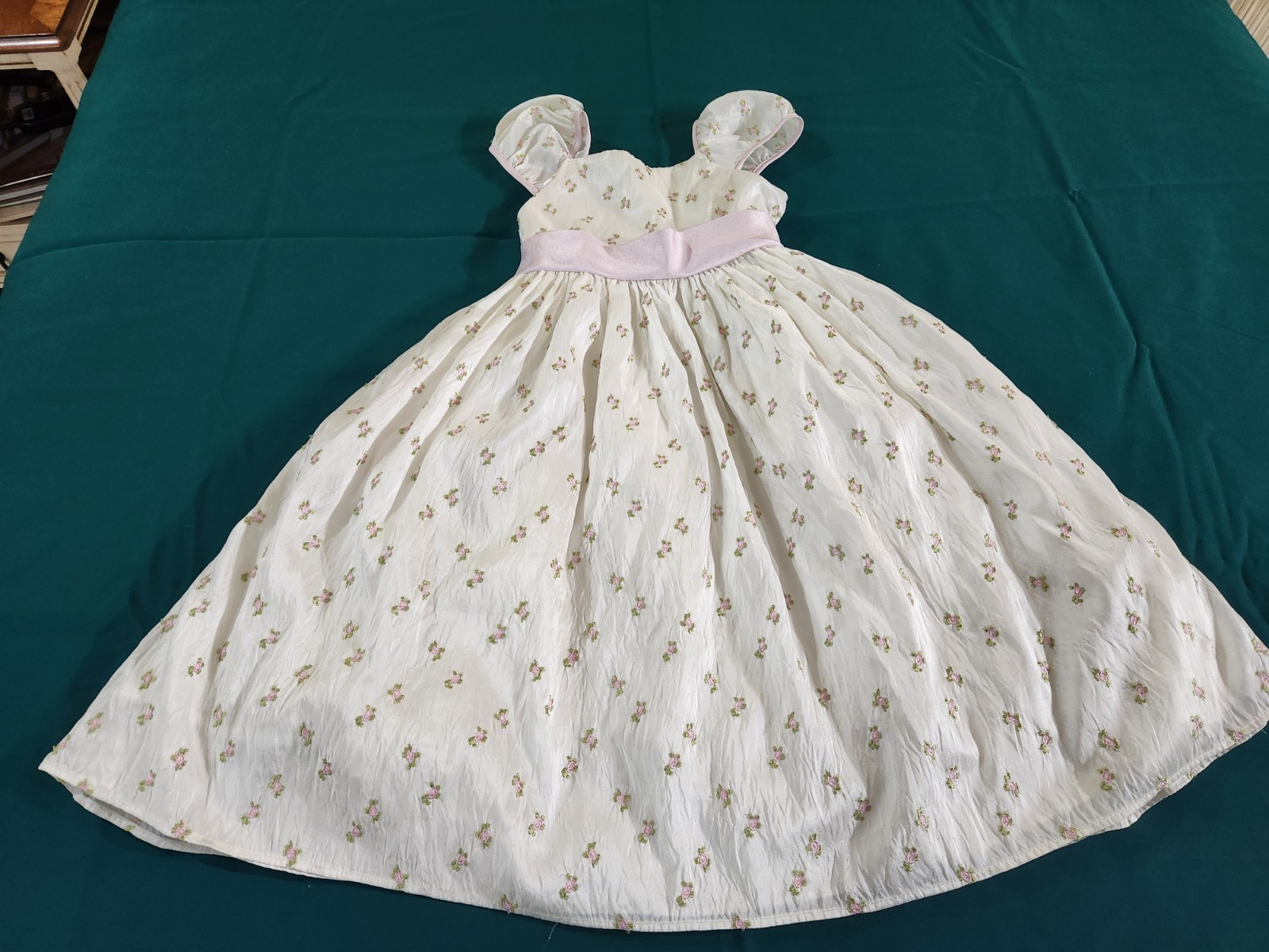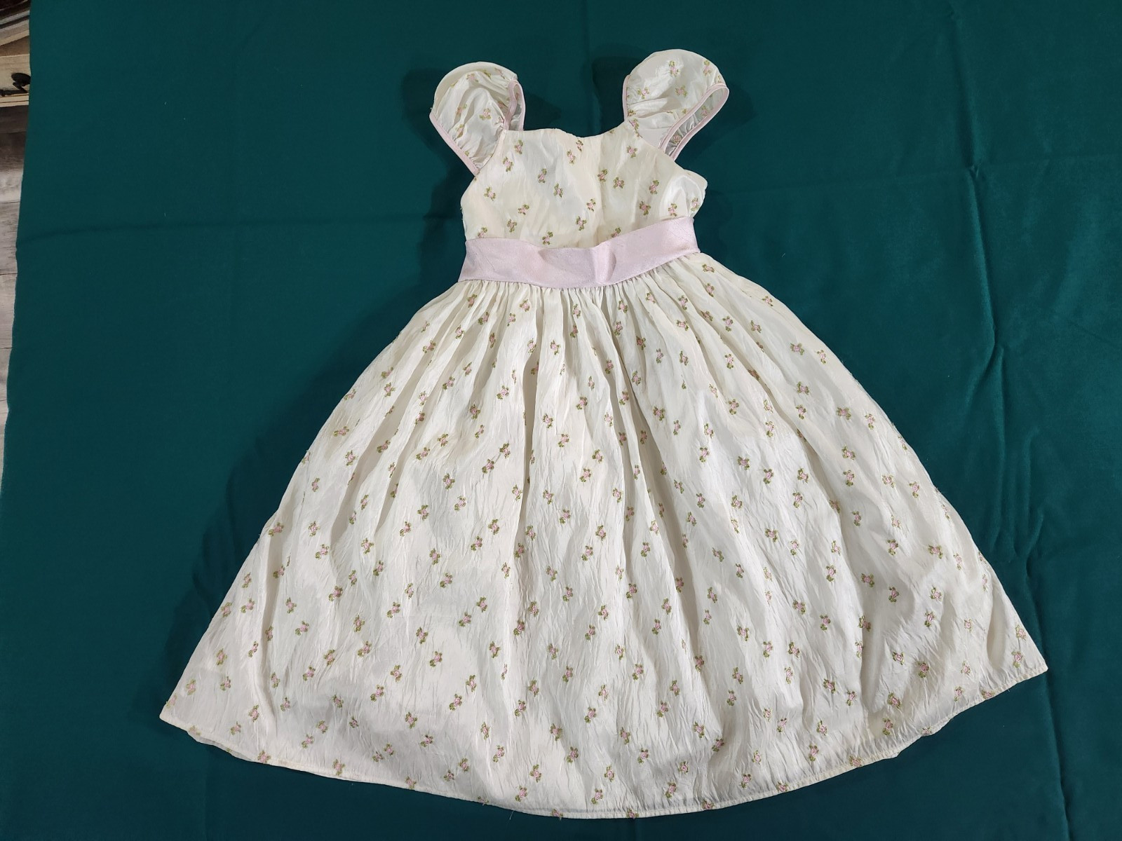 Girls Pink Party Spring Dress Full Skirt Under Skirt Tiny Pink Roses Bow Size 5