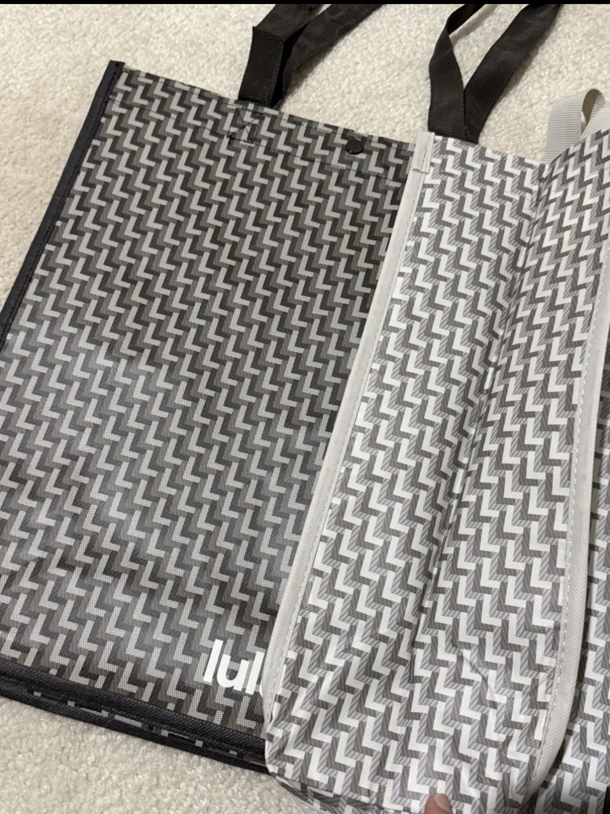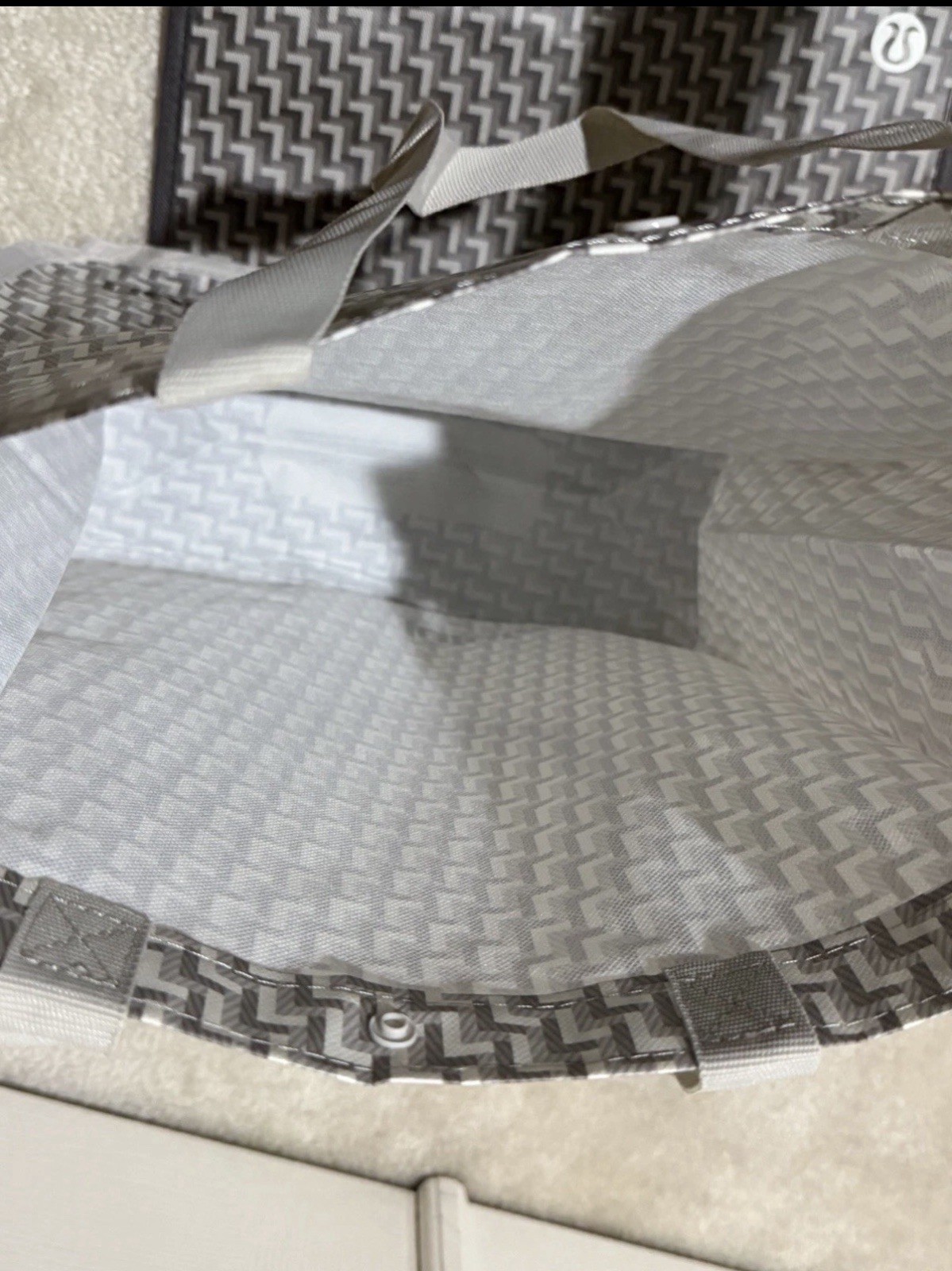 как выглядит 2 New Lululemon Large Reusable Shopper Tote Bag Limited Edition Ivory And Brown фото
