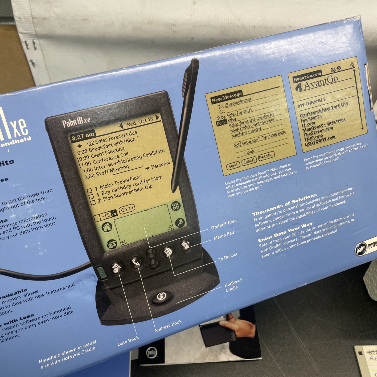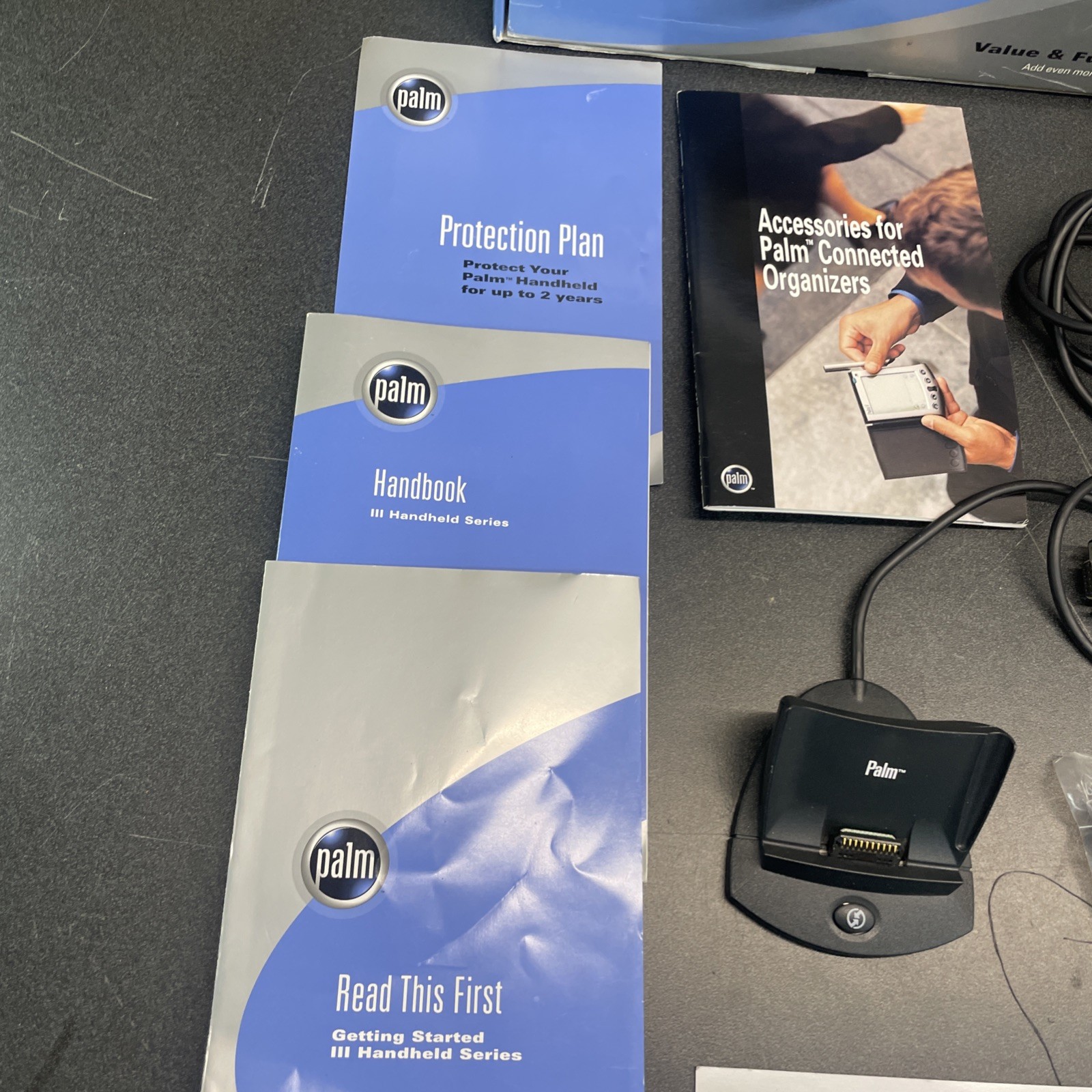 как выглядит Palm III XE PDA Handheld Personal Organizer Original Box Manuals Disc Cradle VTG фото