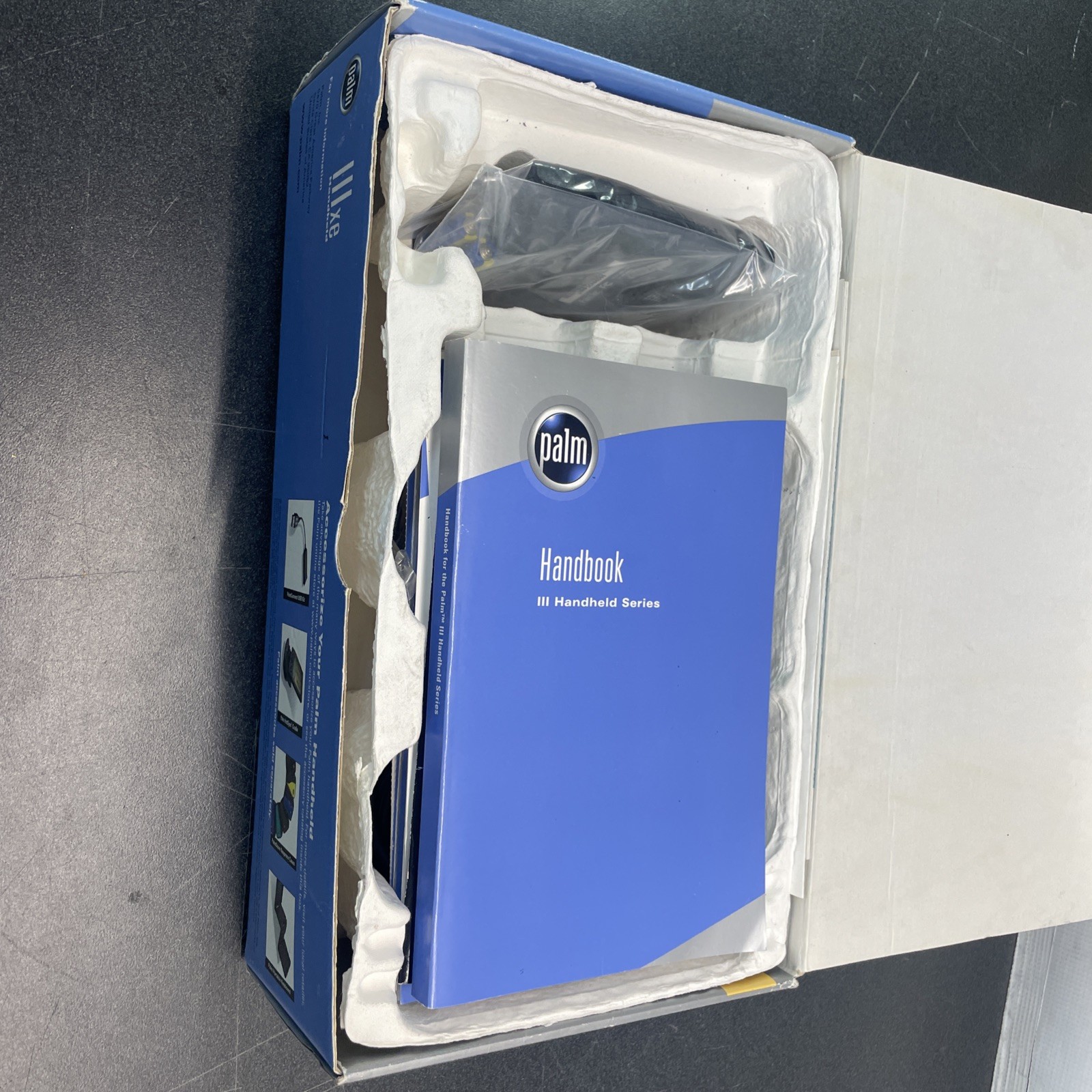 Palm III XE PDA Handheld Personal Organizer Original Box Manuals Disc Cradle VTG