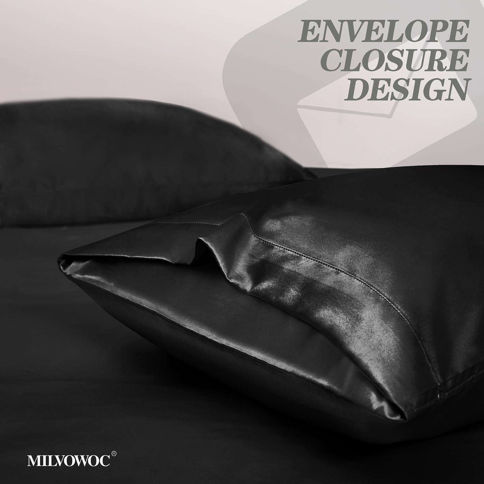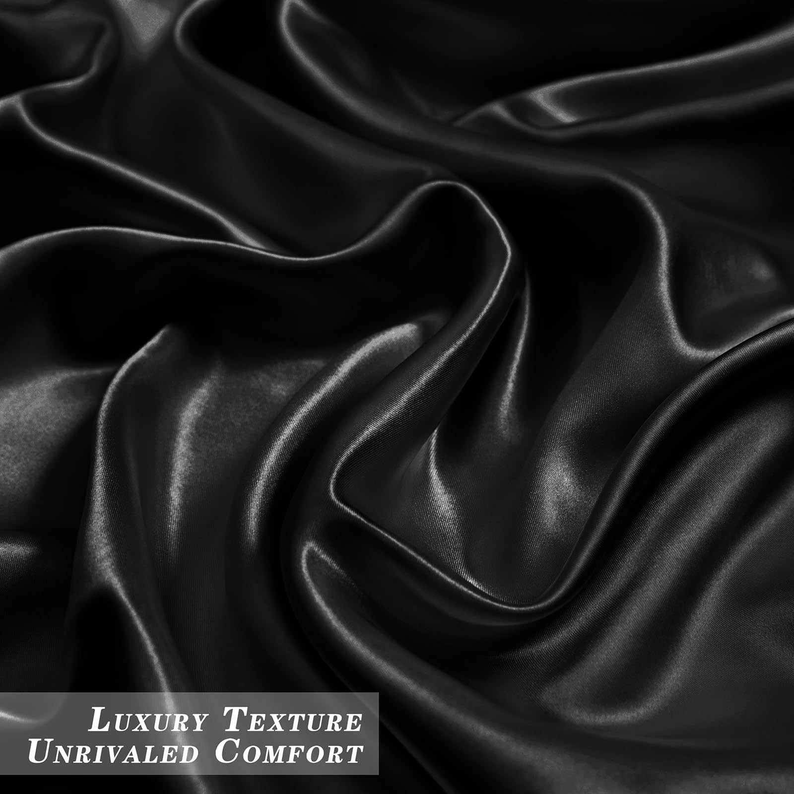 6 Pcs Black Satin Duvet Cover King Size King No Comforter ,