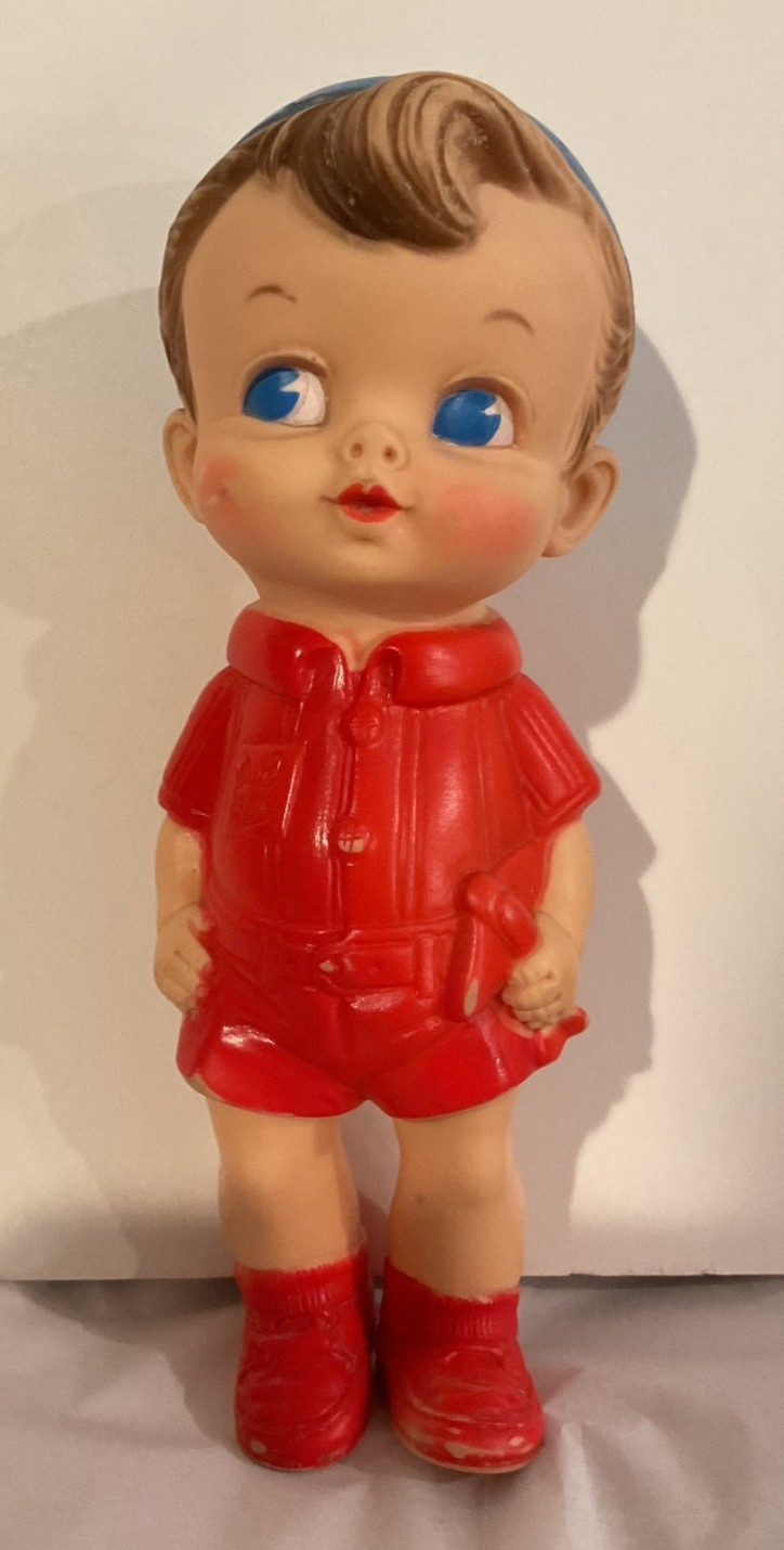 1958 VTG Edward Mobley Co Arrow Rubber Boy 8 Doll, Big Blue Eyes / Red Clothes