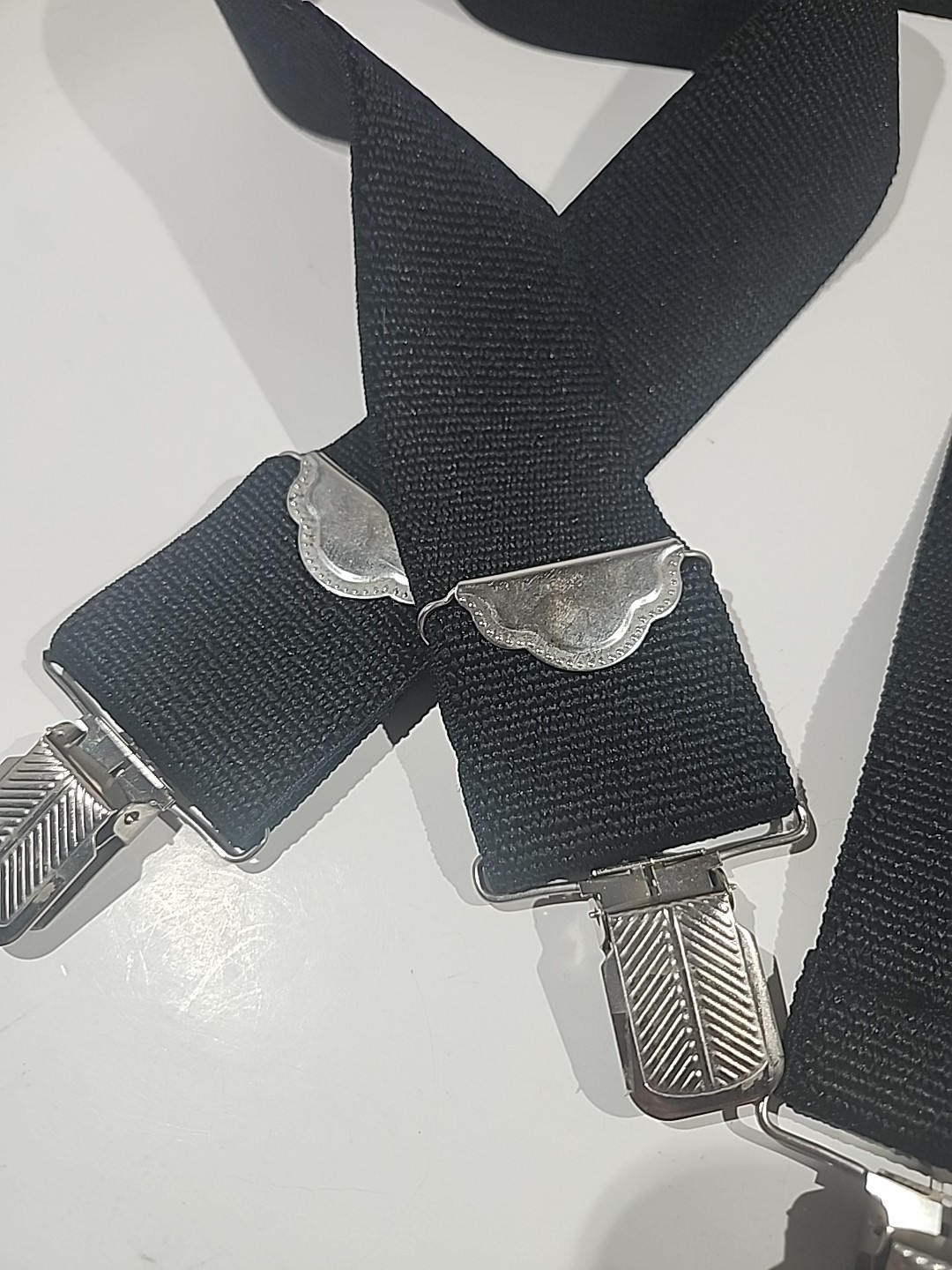 Suspenders Mens Black Elastic Silver Tone Clips 2 inch