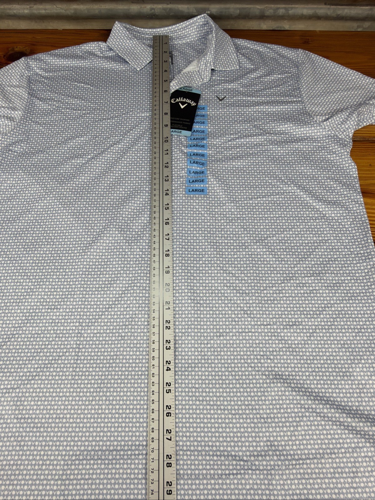 как выглядит CALLAWAY Opti-Dri Navy Blue Geo AOP Performance Stretch Golf Polo Mens LARGE NWT фото