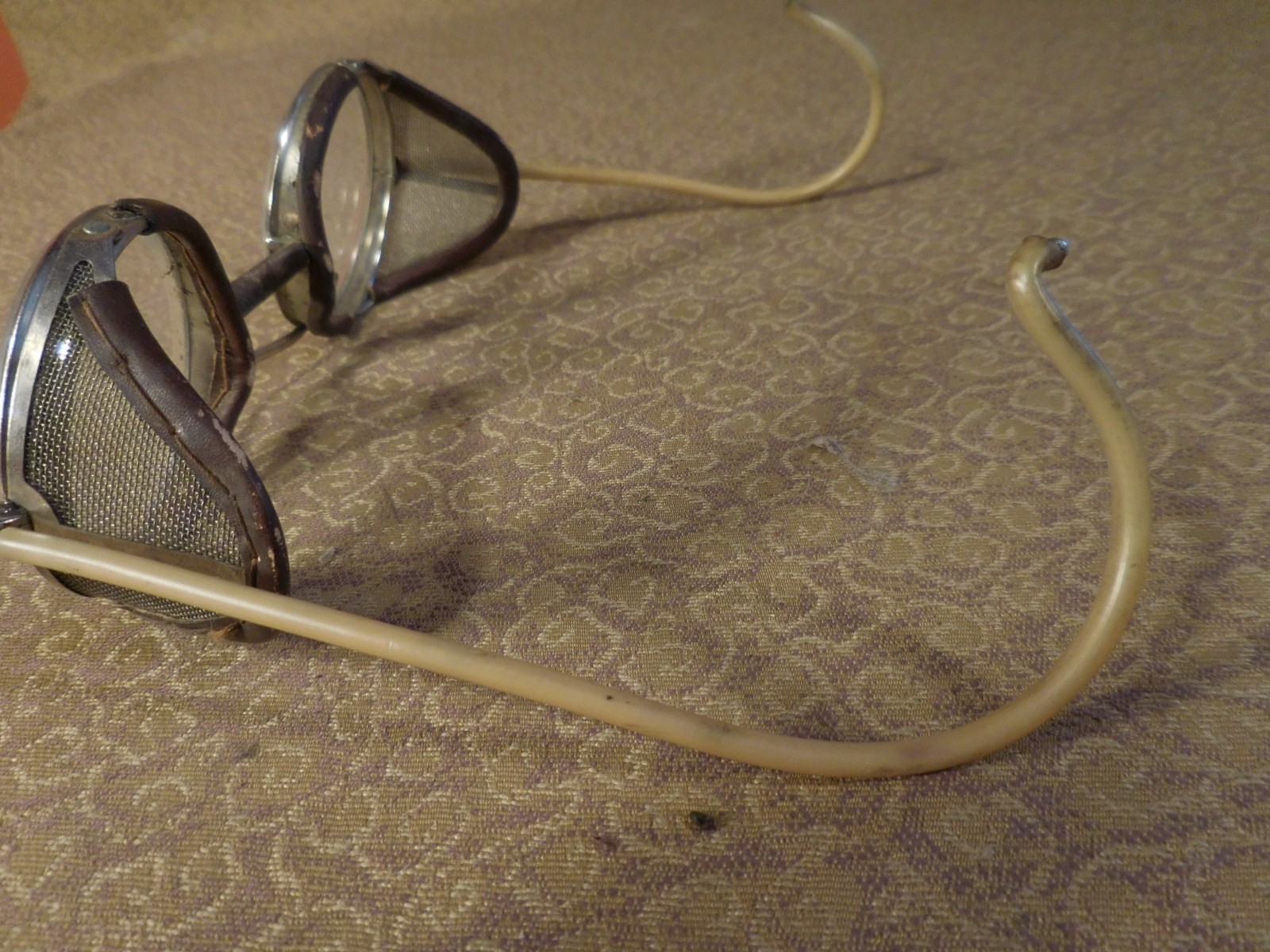 Vintage Clear Wire Rim Safety Glasses w Side Shields Leather Steampunk Biker