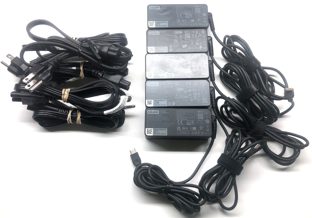 Lot of 5 Genuine Lenovo Laptop Charger AC Power Adapter USB-C Tip 20V 2.25A 45W