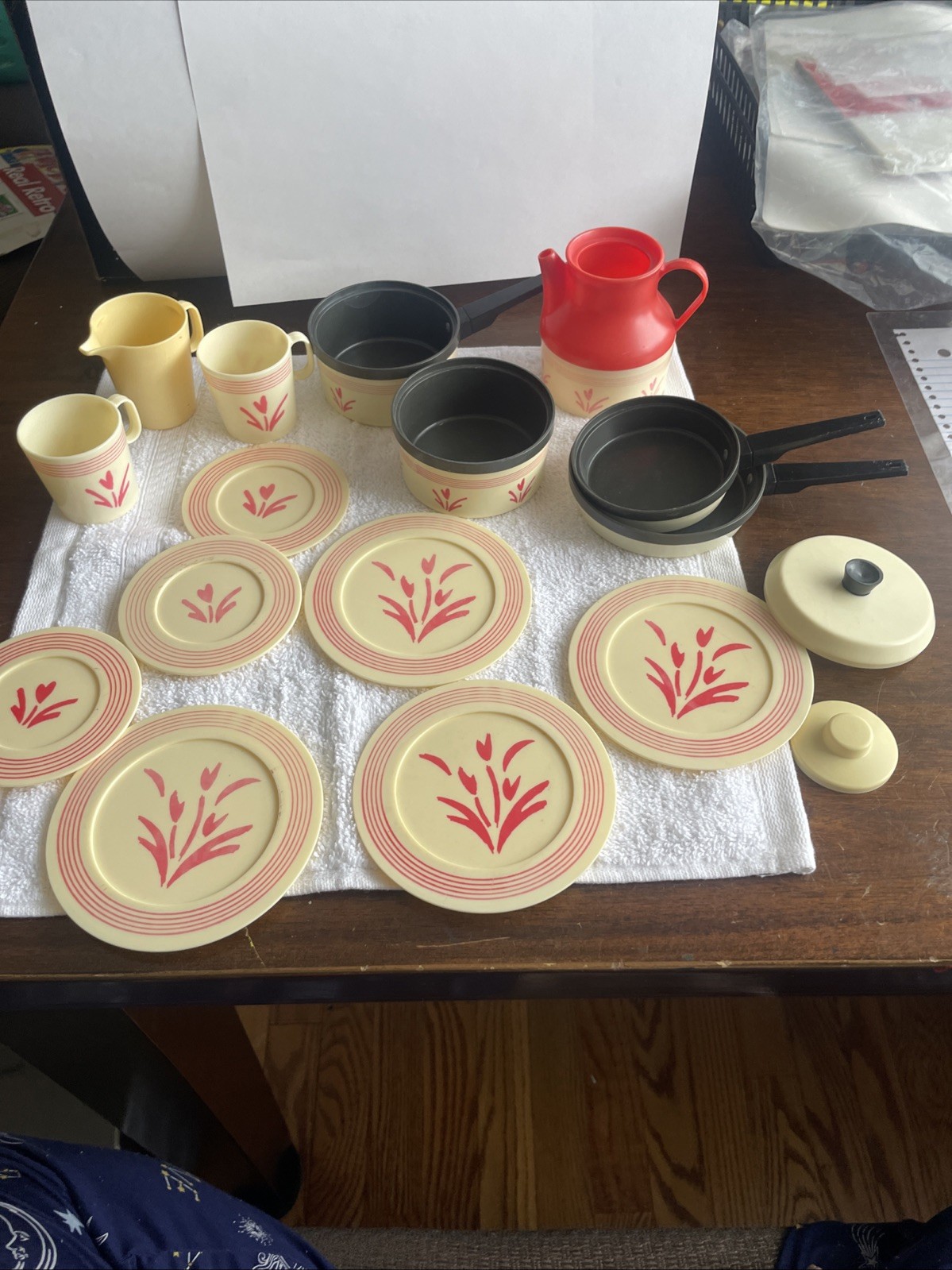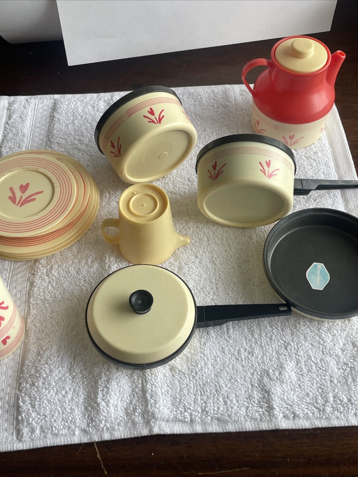 как выглядит VINTAGE 1950s PLASTIC CHILTONKITCHEN COOKWARE DISHES TOY PLAY SET Of 17 Pieces фото