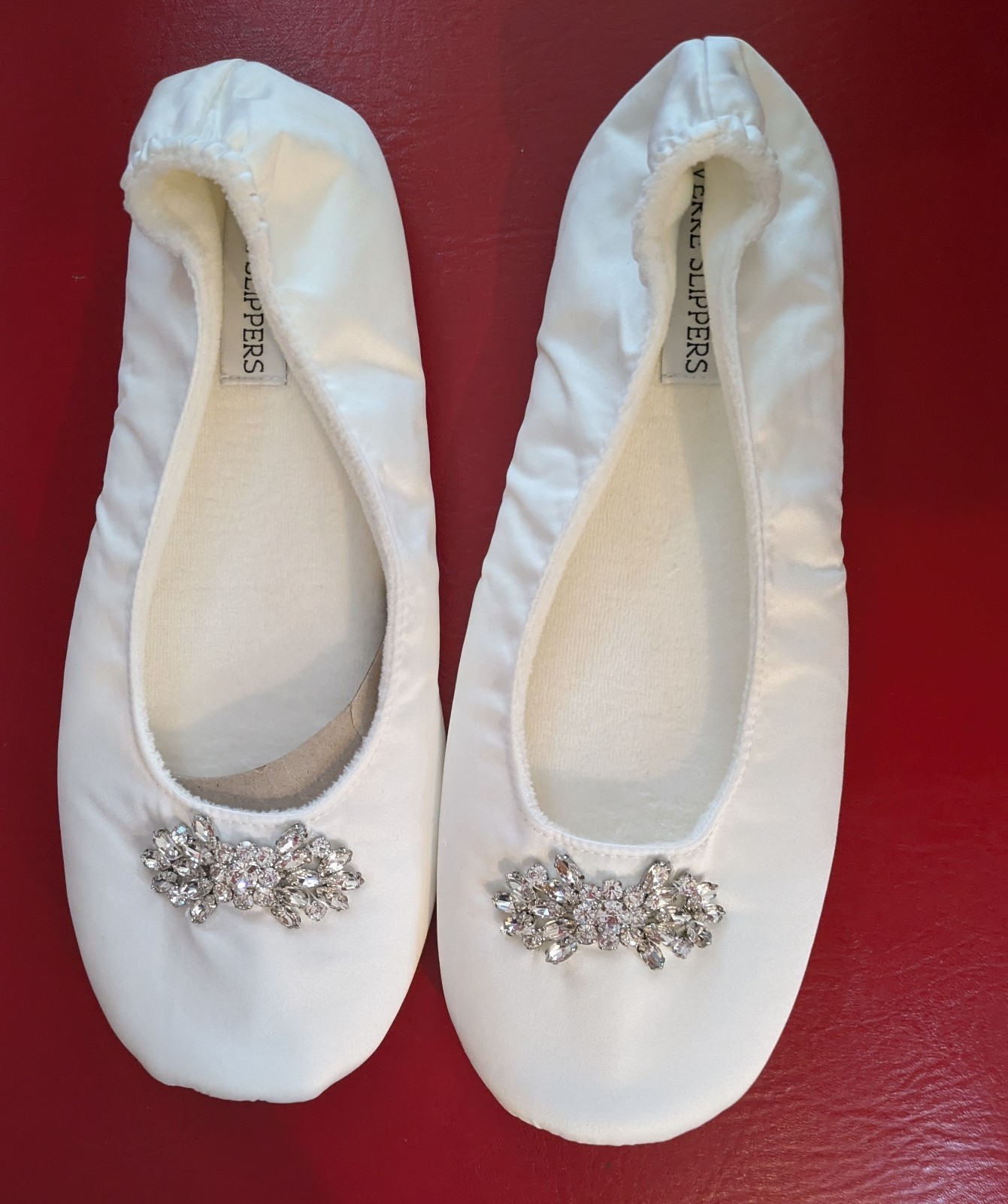 Verre Bridal Ballet Slippers Size M 8-9 White W/Silver Rhinestones Wedding Shoes