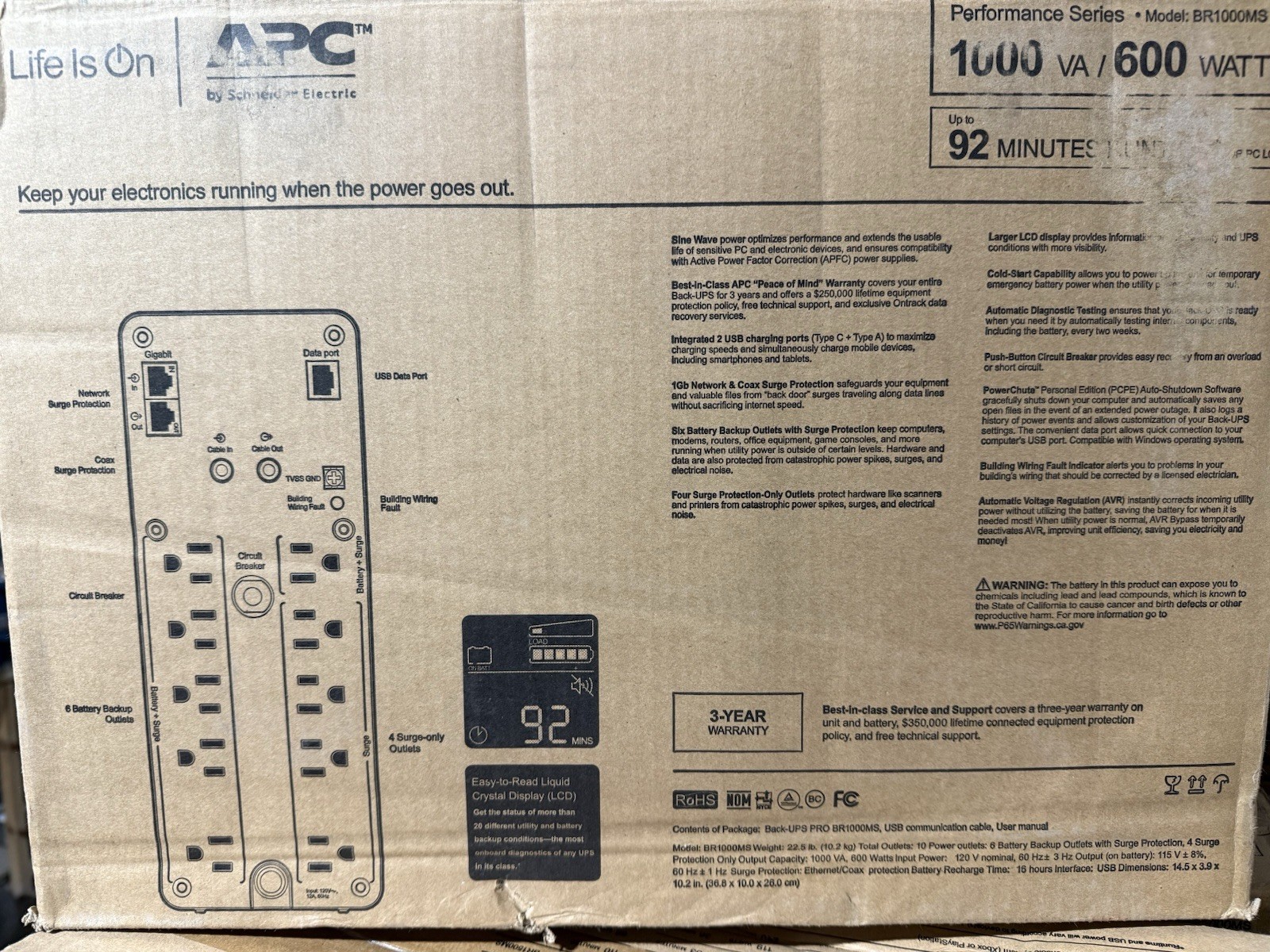 как выглядит APC BR1000MS Back UPS PRO BR 1000VA, SineWave, 10 Outlets, 2 USB Charging Ports, фото
