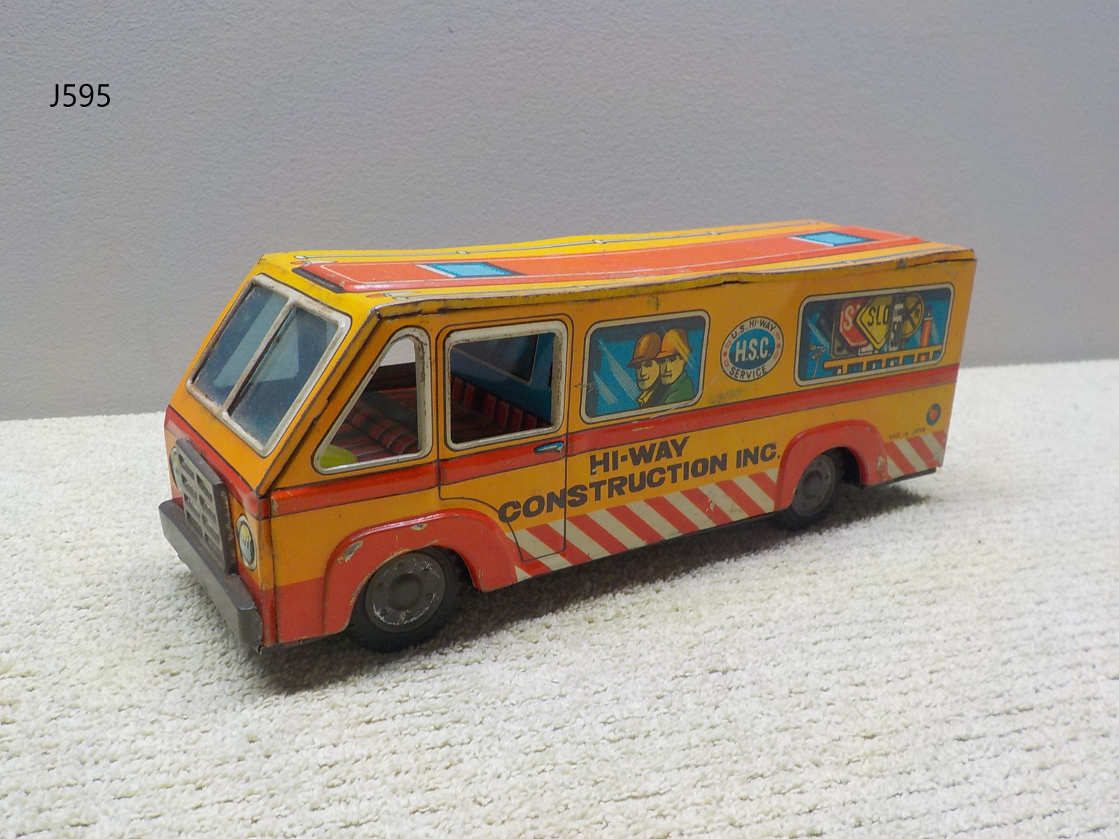 Vintage HI WAY Construction Tin Lithograph Van Japan