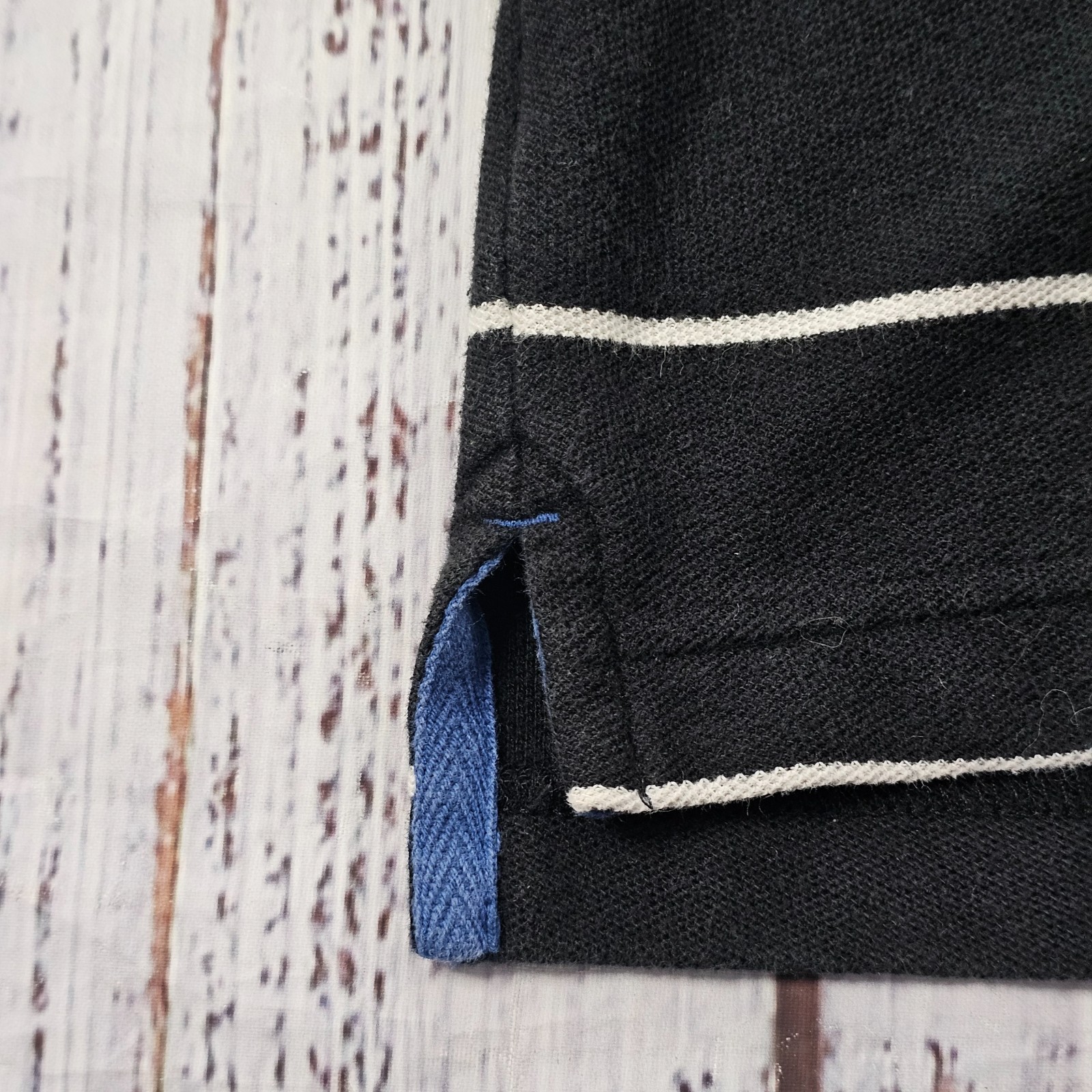 Nautica Performance Deck Shirt Black Striped Short Sleeve Polo Shirt Men's L