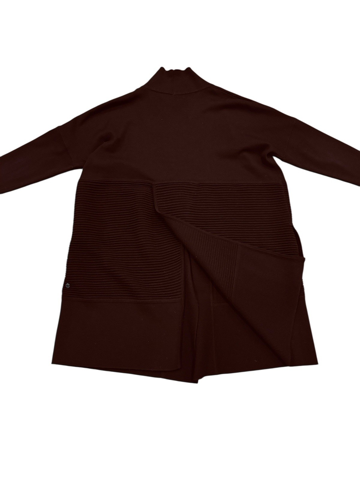 как выглядит Lululemon Sit in Lotus Black Cherry Cardigan Merino Wool Wrap Sweater фото