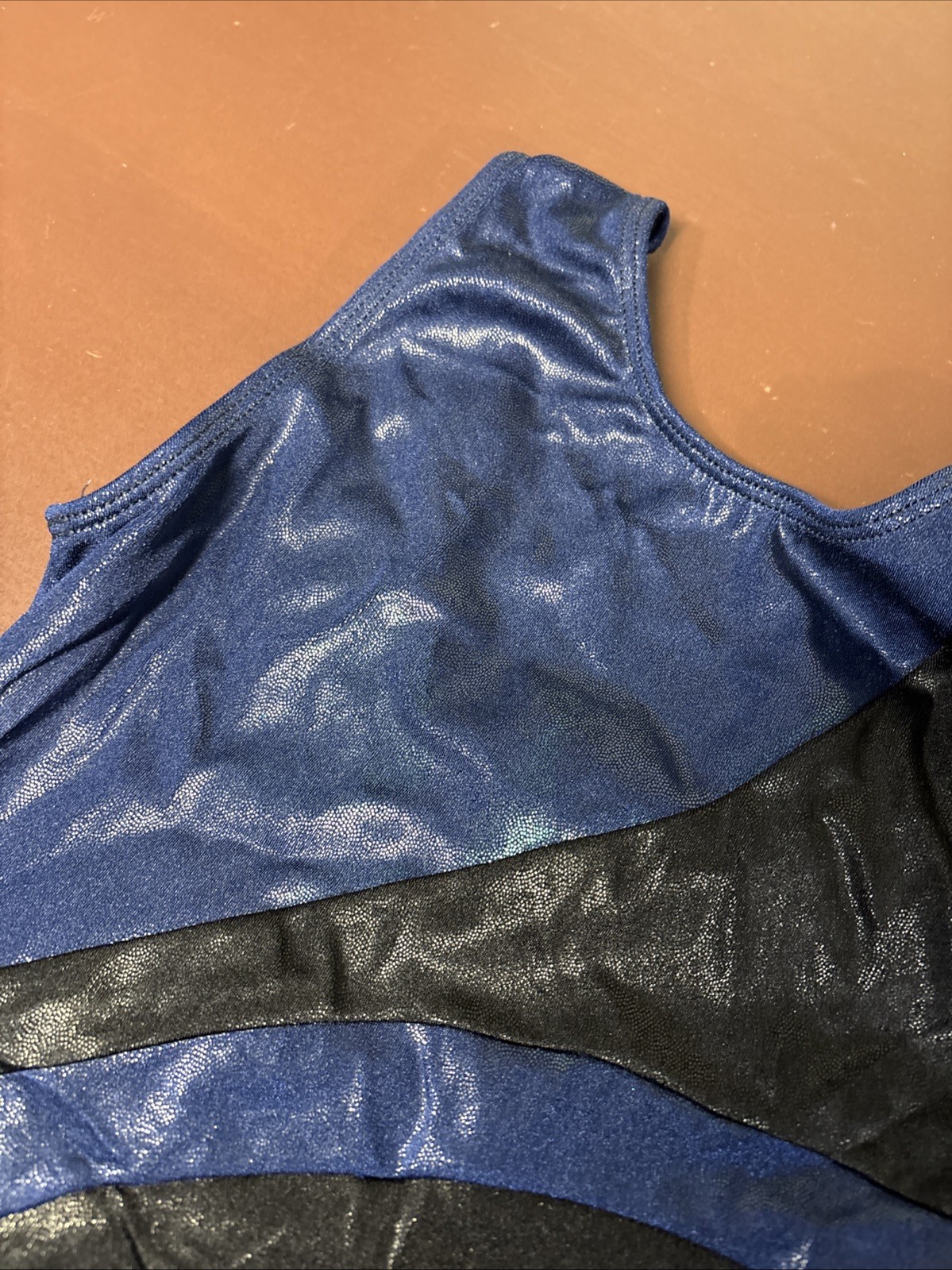 как выглядит GK Elite Gymnastics Leotard FOIL shimmer DEEP NAVY BLUE Black TANK Leo SZ: AXS фото