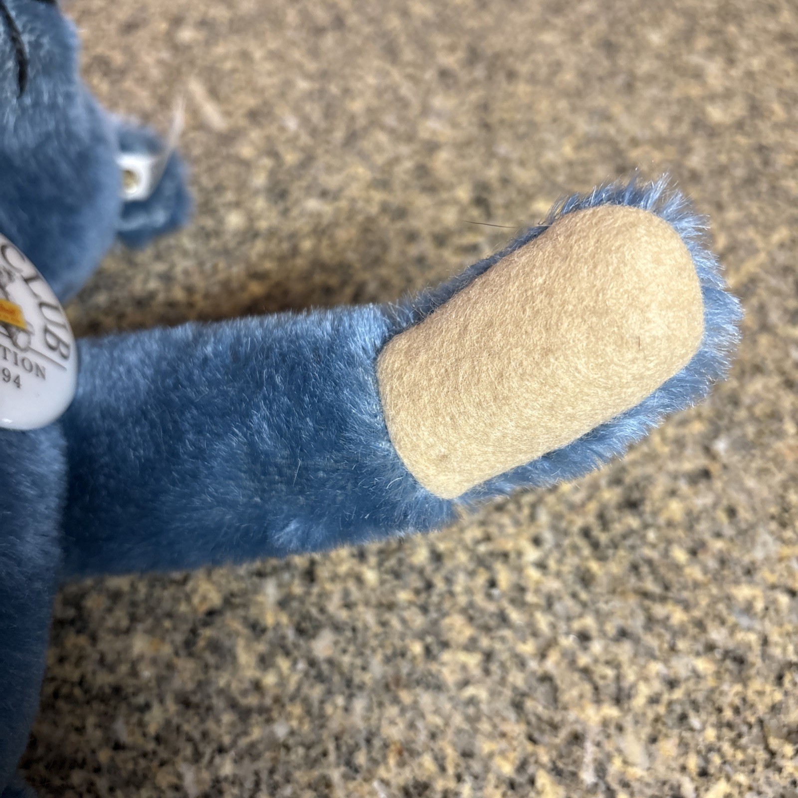 • 1994 STEIFF Club Teddy Bear Blue Mohair 1908 Replica 420047 Button Tags Growler