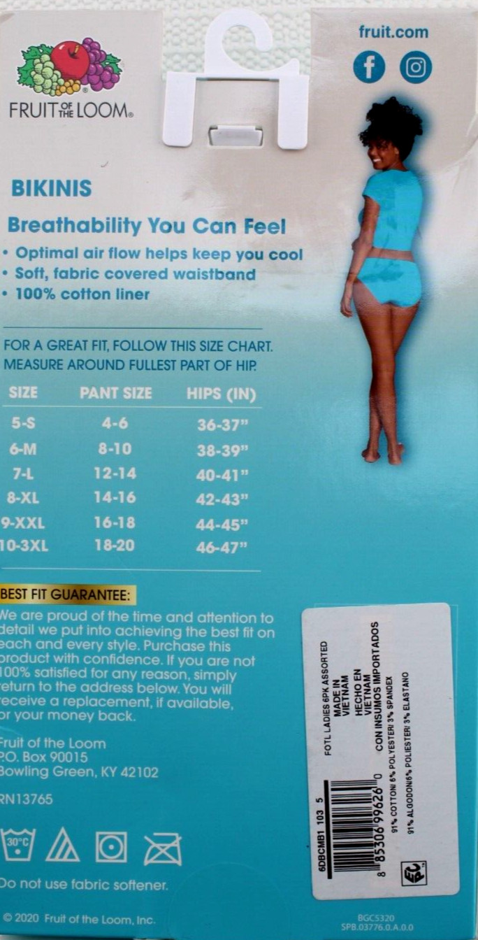 FRUIT of the LOOM 6-pack Size 5 S Cotton Blend Multi-Colors Women's Bikinis