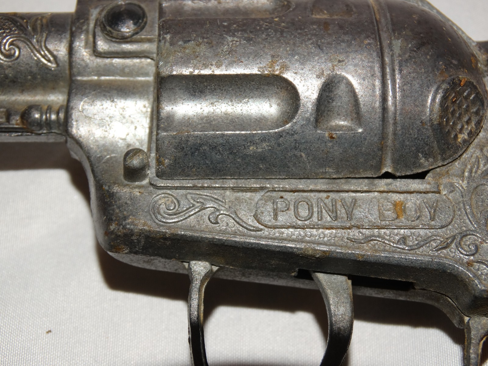 Vintage Pony Boy 10 Western Diecast Chrome Body Cream Grip Cap Gun Toy Pistol