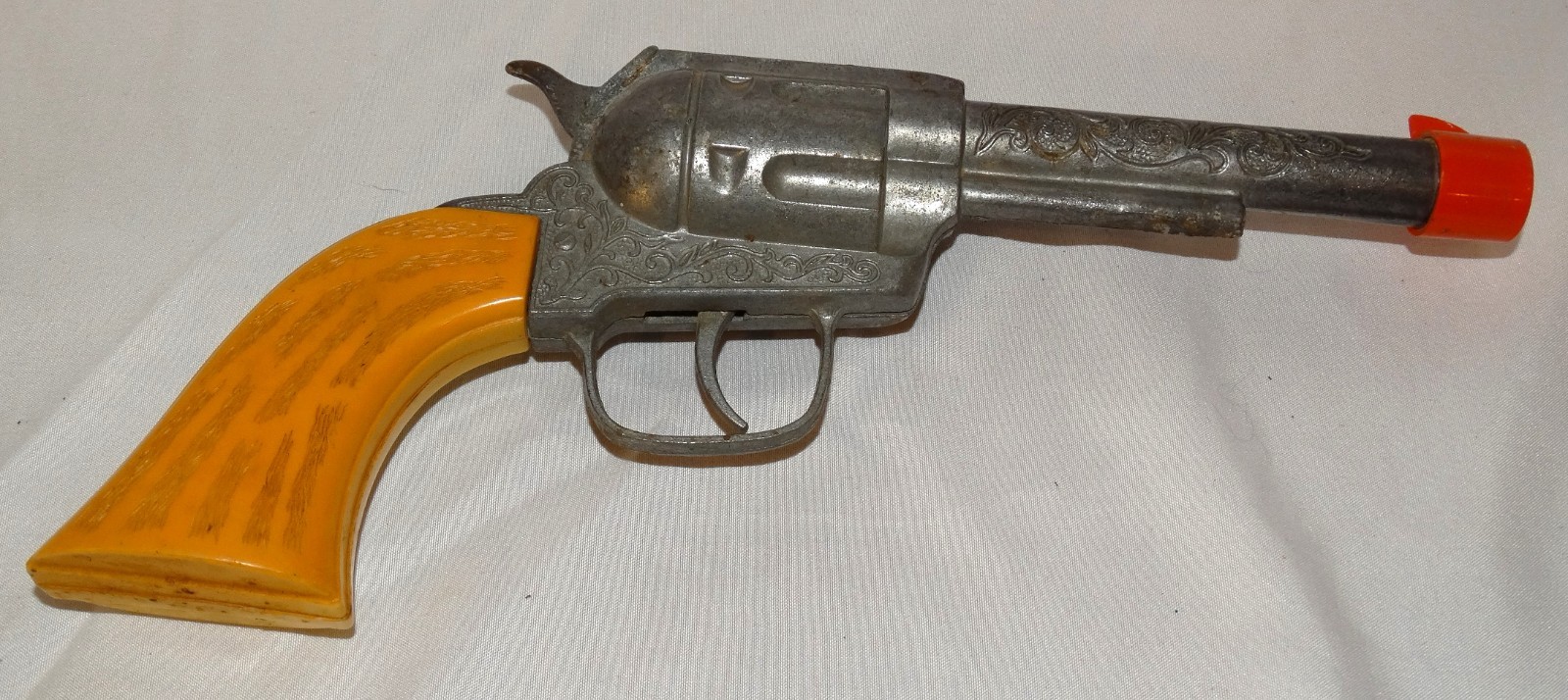как выглядит Vintage Pony Boy 10" Western Diecast Chrome Body Cream Grip Cap Gun Toy Pistol фото