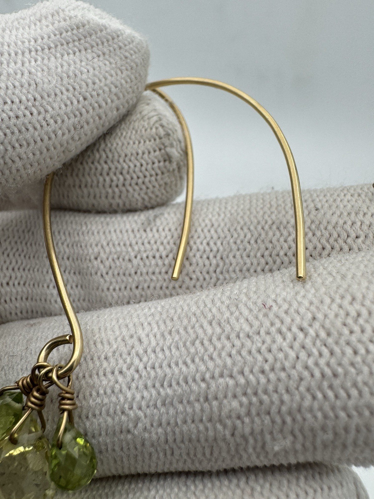 как выглядит Natural Green Peridot Solid 14k Gold Women Hoop Earrings Wire фото
