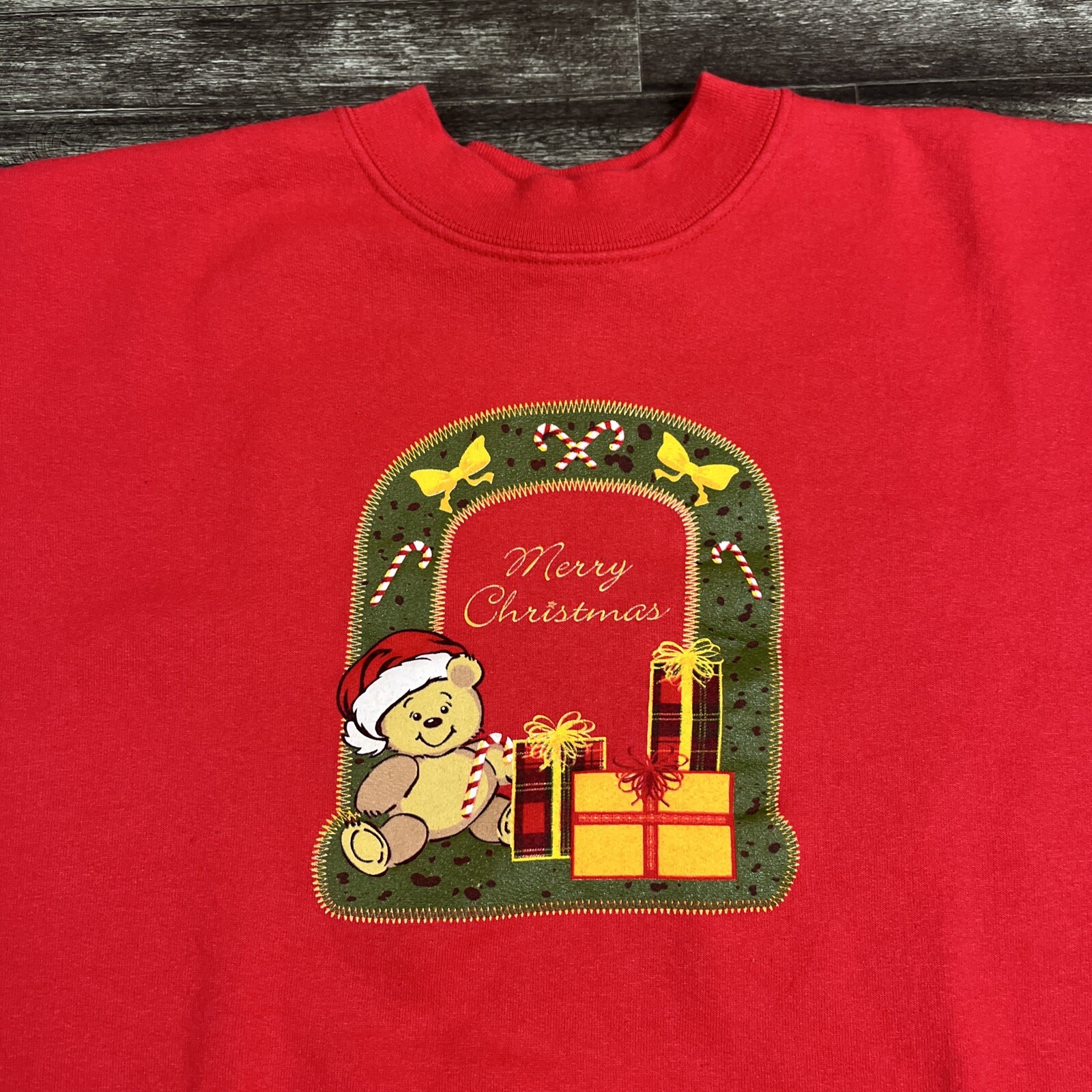 Vintage 90s Christmas Graphic Crewneck Sweatshirt XL Red Teddy Bear Cute