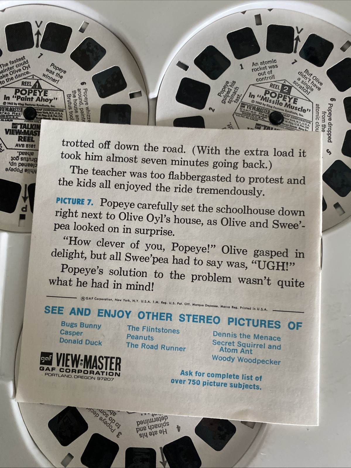 Vintage AVB 516 Gaf Talking View-Master Reels Popeye W/Booklet
