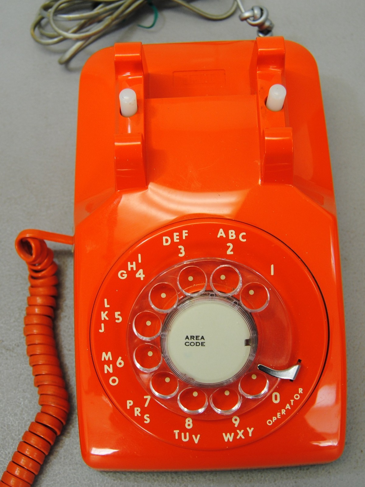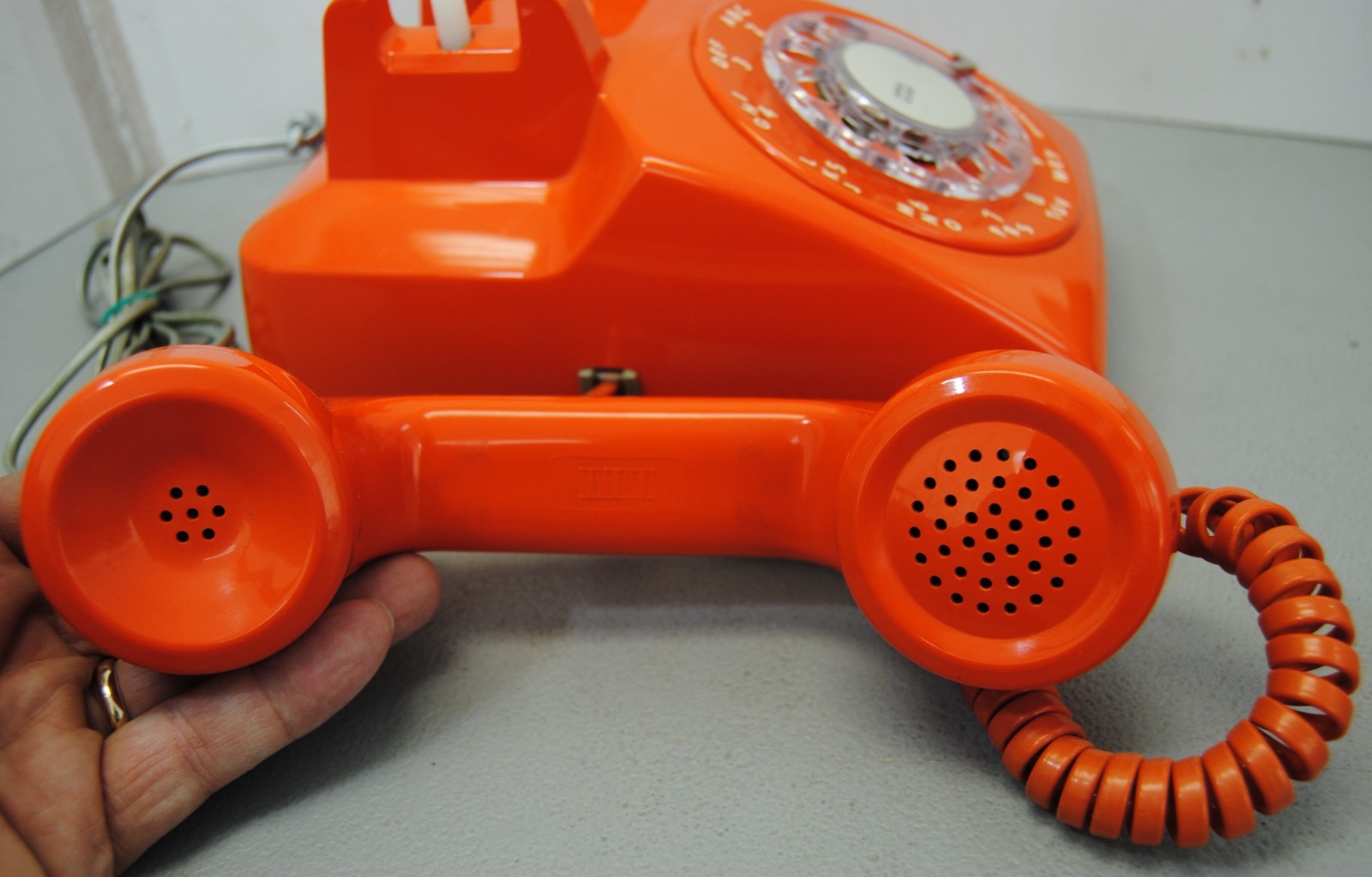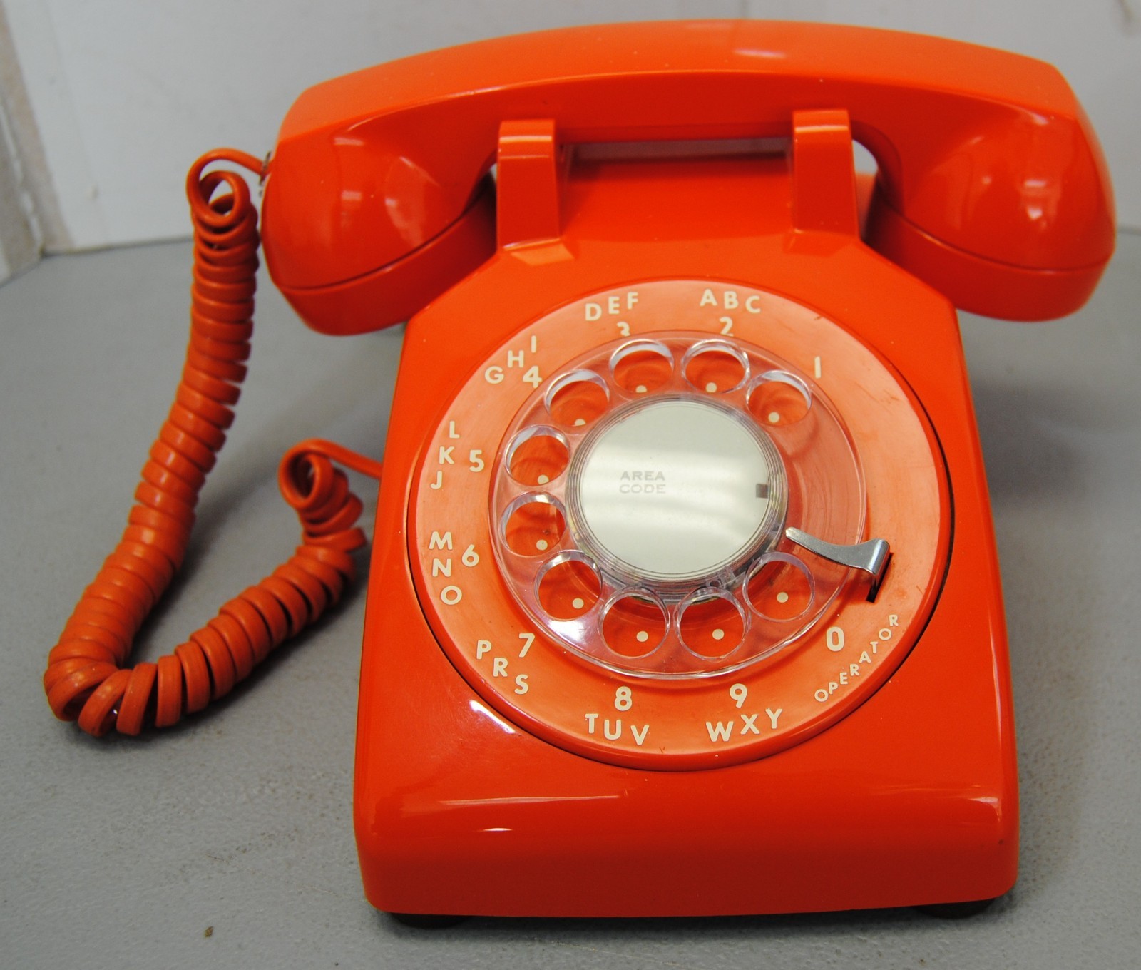 • 1986 ITT Orange Rotary Desk Phone Telephone Model 500. Very Nice Shape
